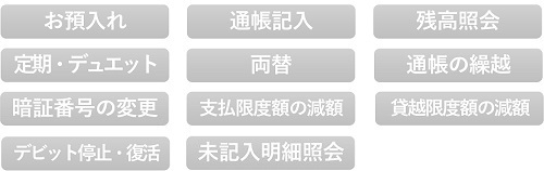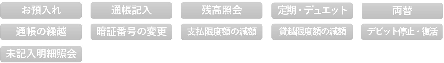 ・通帳記入・通帳繰越は、通帳の種類によって一部お取り扱いできない場合があります。