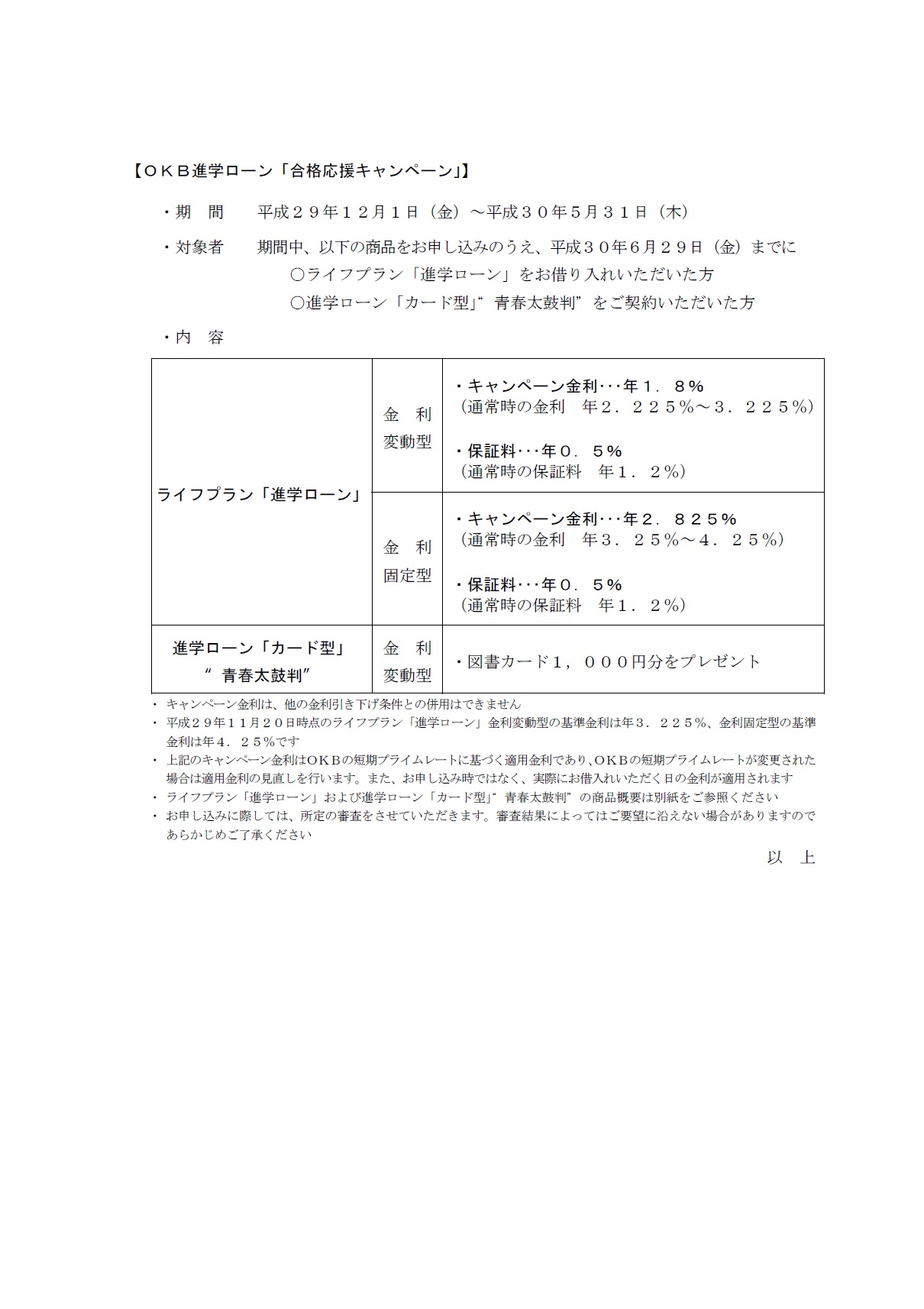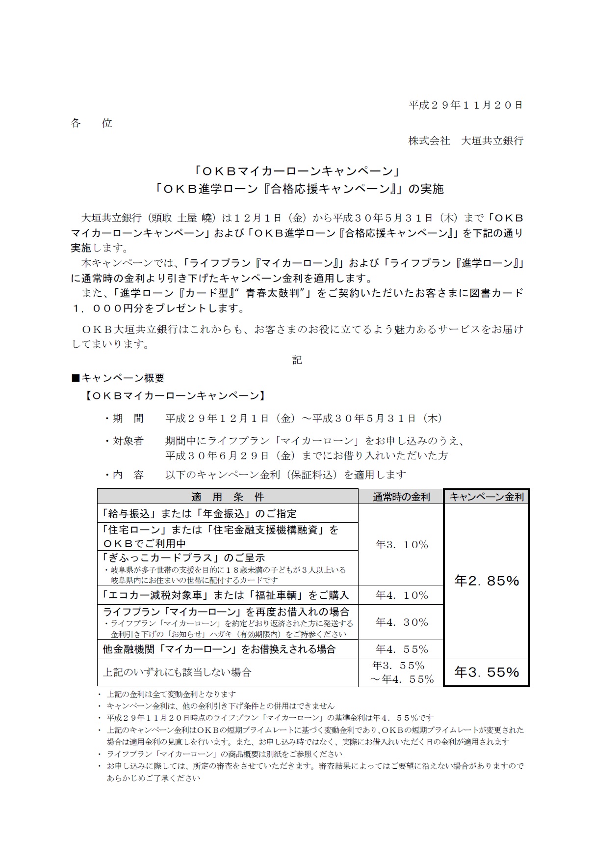 「OKBマイカーローンキャンペーン」「OKB進学ローン『合格応援キャンペーン』」の実施