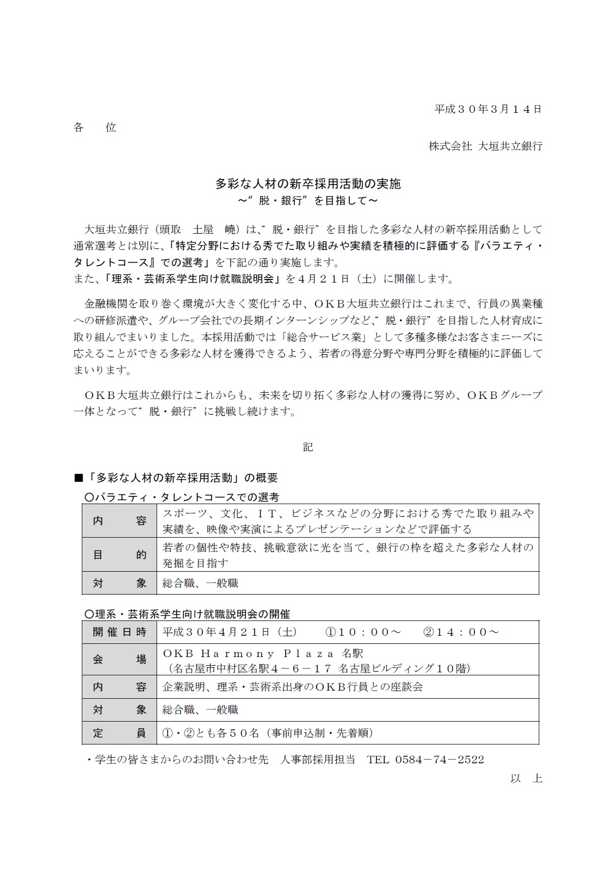 多彩な人材の新卒採用活動の実施~“脱・銀行”を目指して~