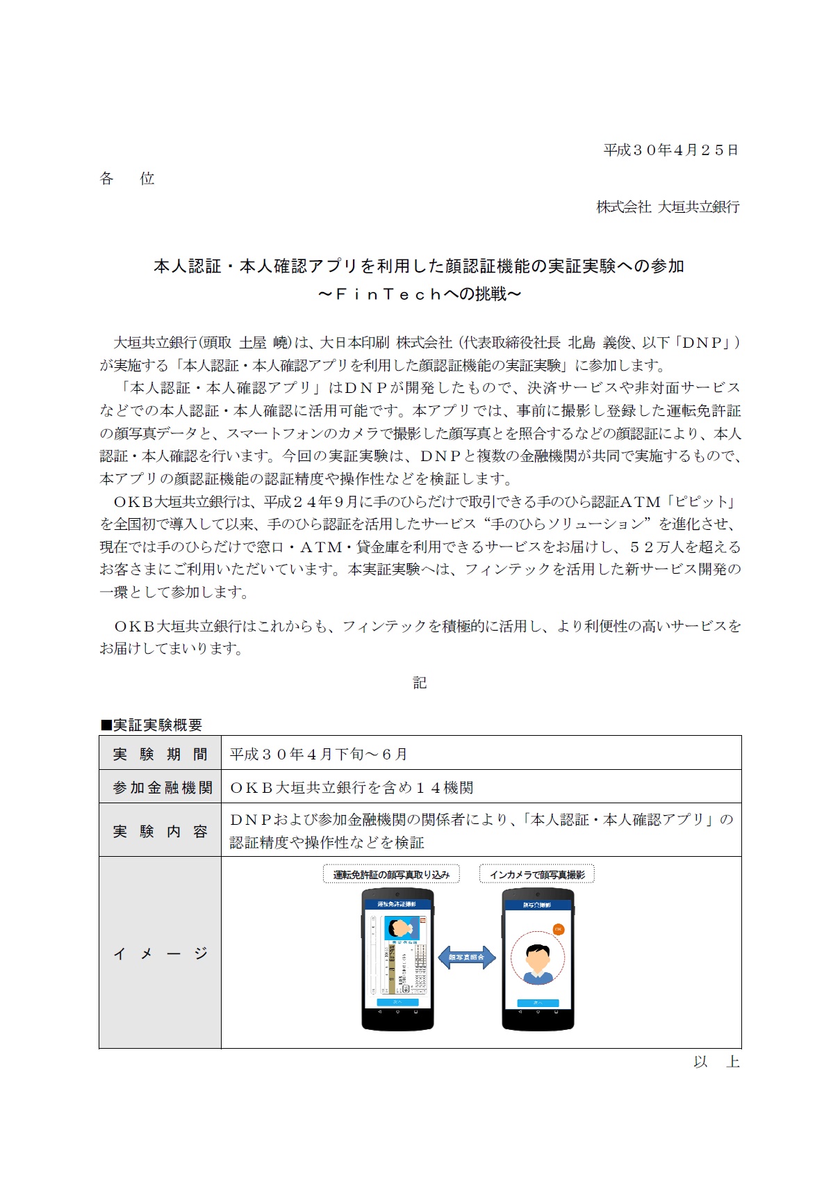 本人認証・本人確認アプリを利用した顔認証機能の実証実験への参加~FinTechへの挑戦~