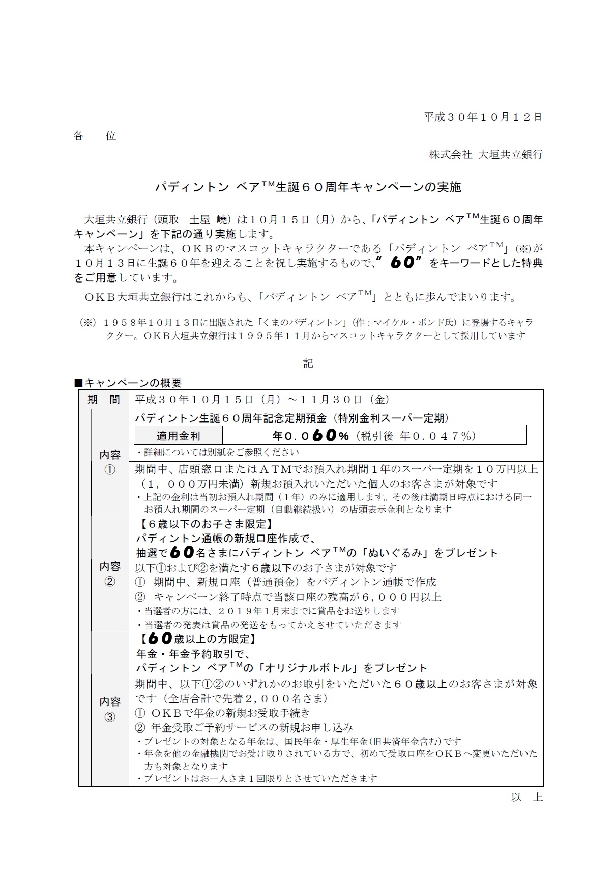 パディントン ベアTM生誕60周年キャンペーンの実施