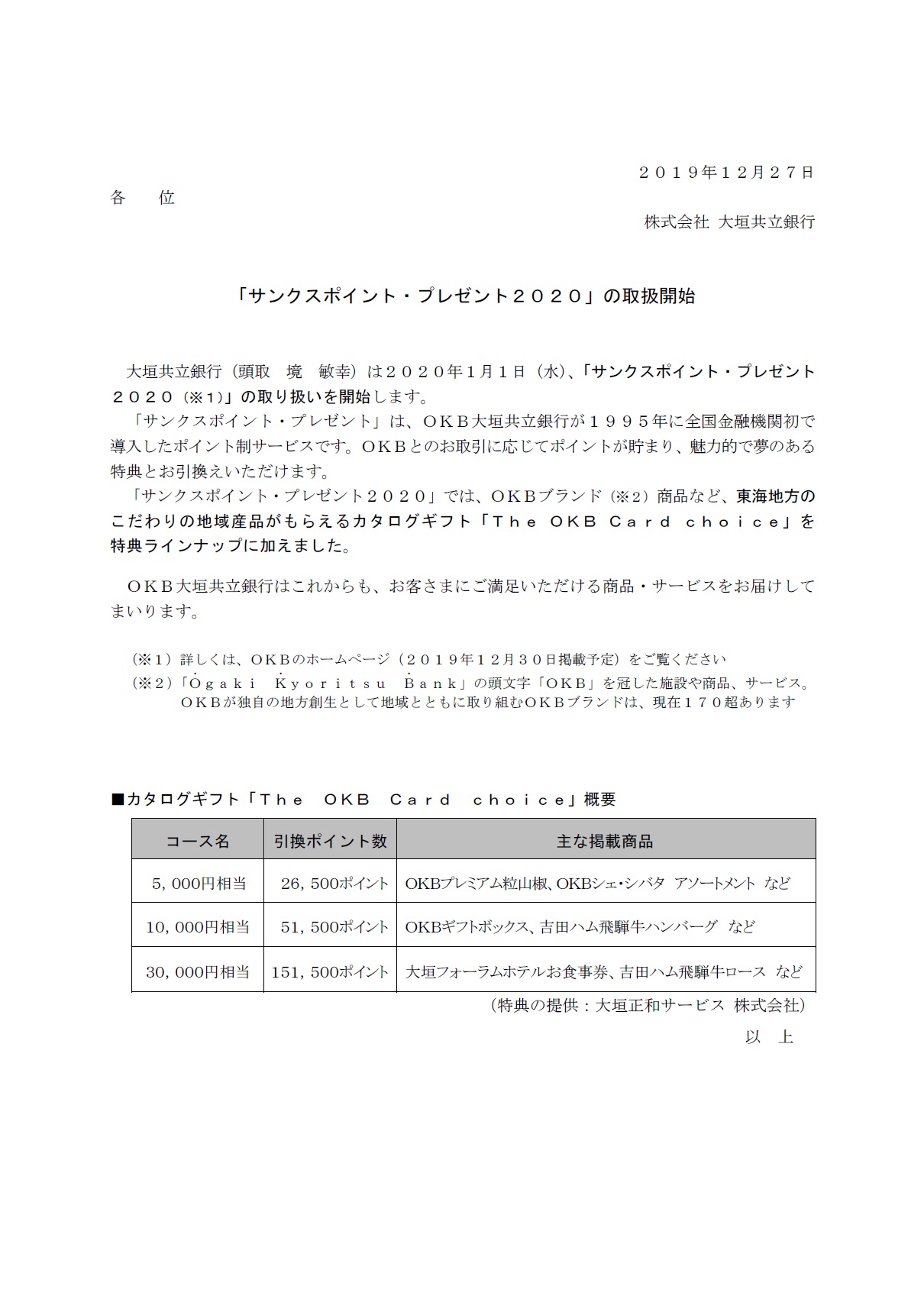 「サンクスポイント・プレゼント2020」の取扱開始