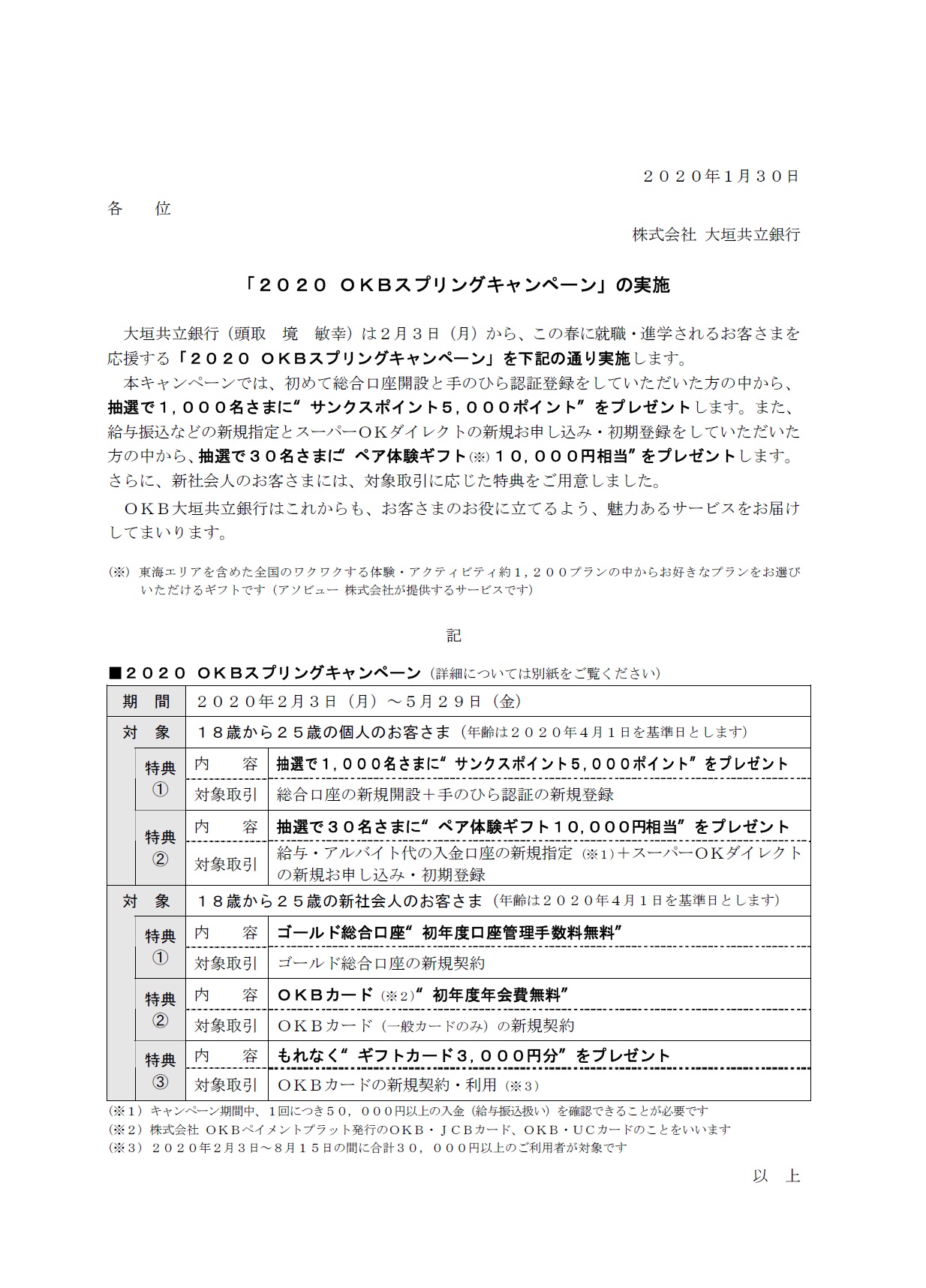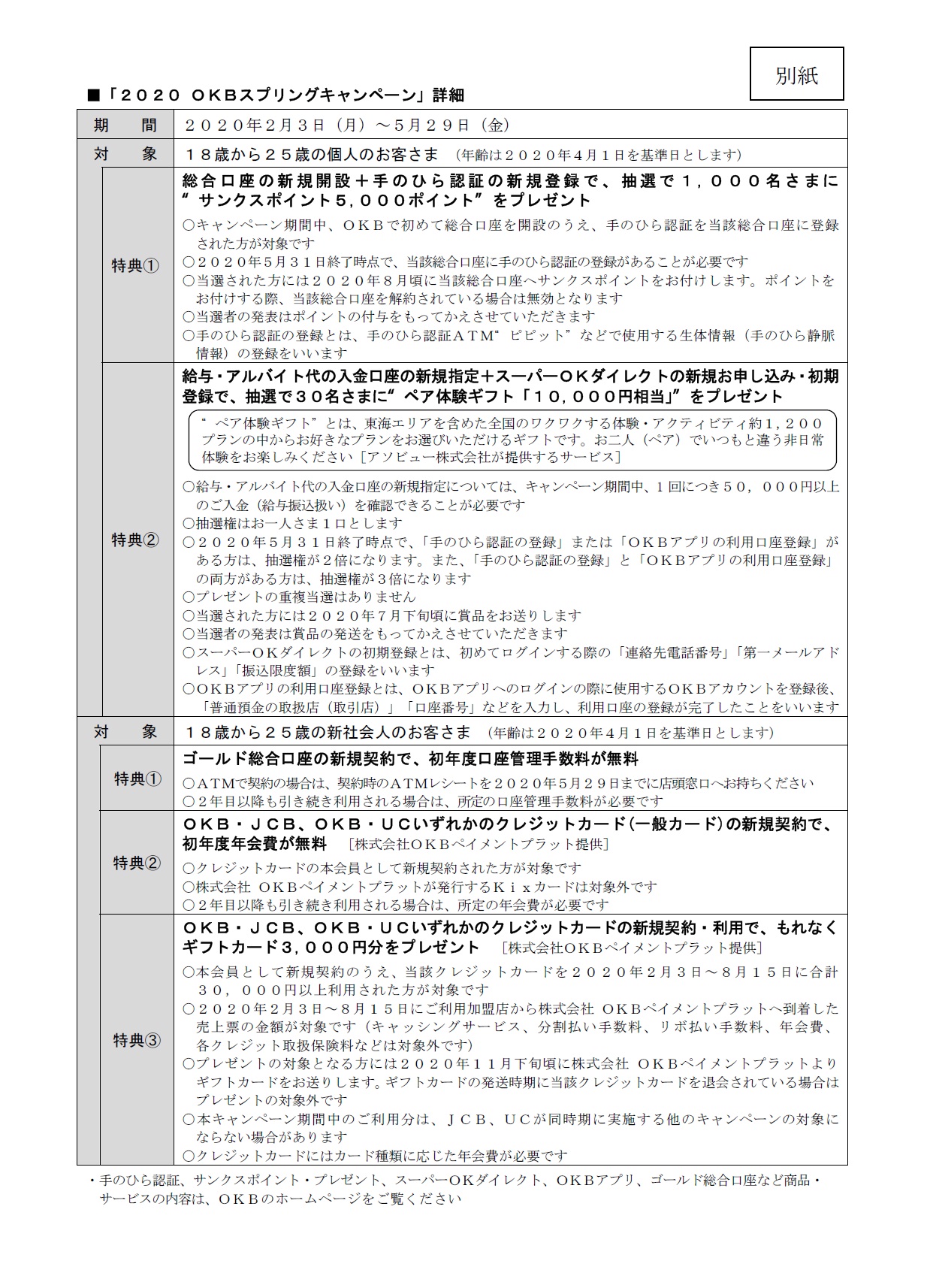 「2020 OKBスプリングキャンペーン」の実施