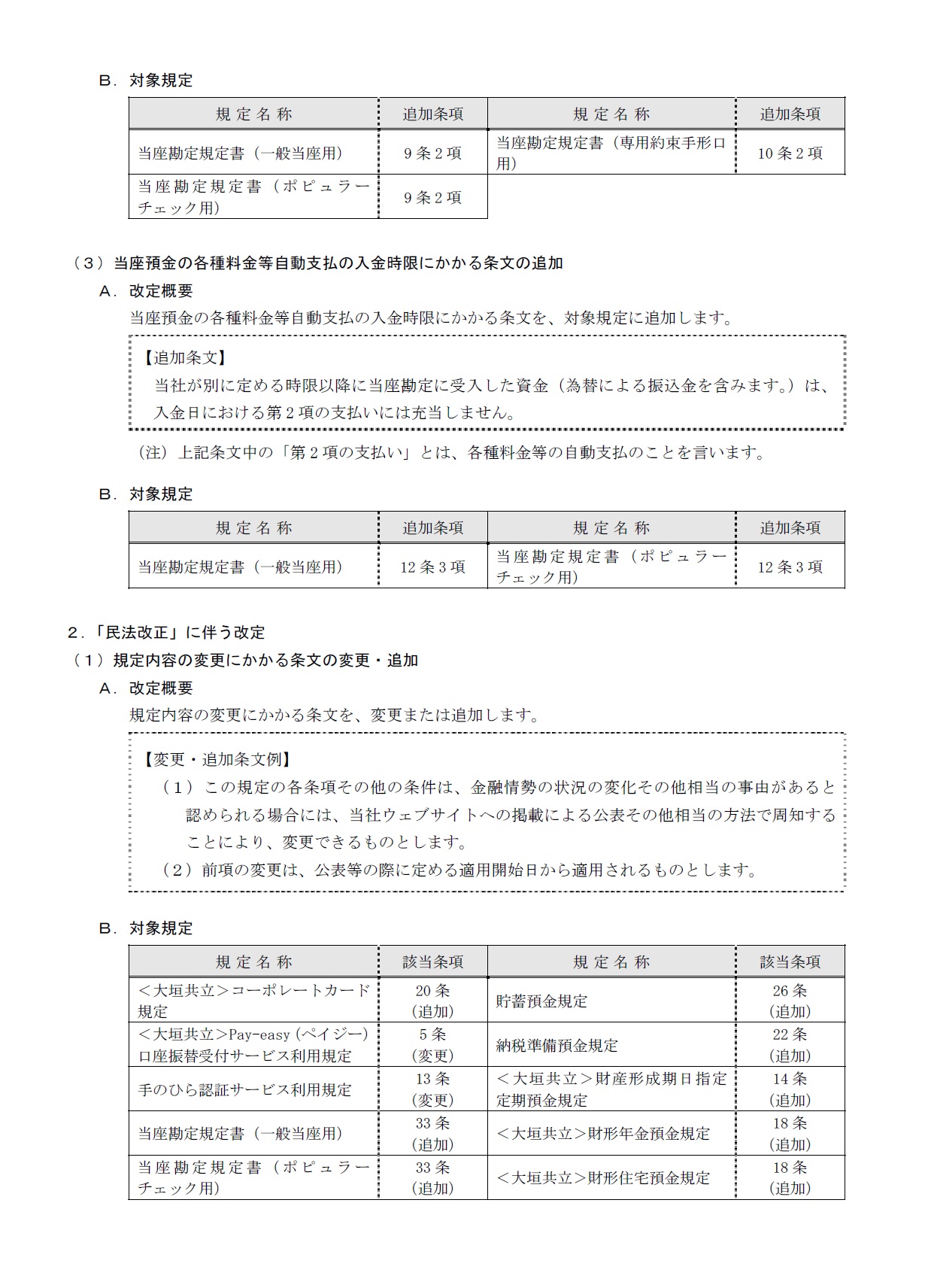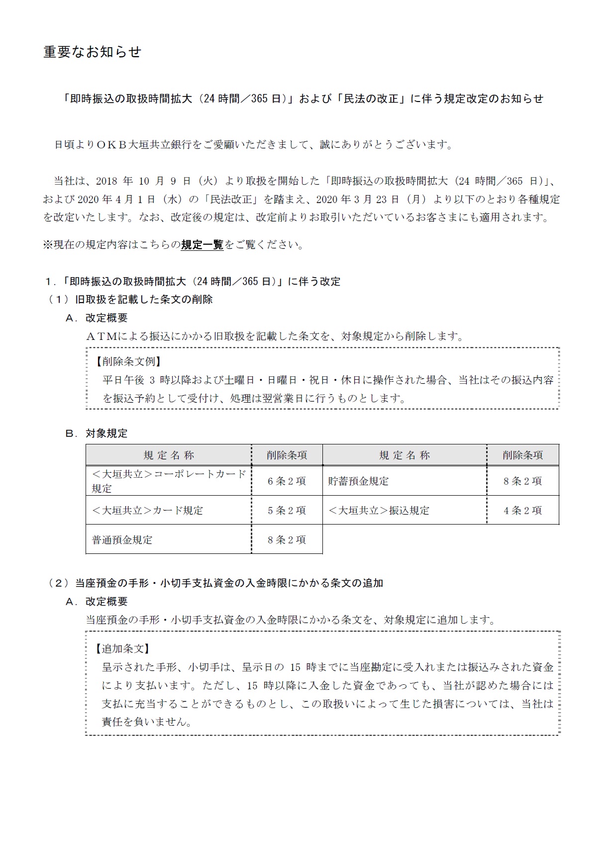 「即時振込の取扱時間拡大(24 時間/365 日)」および「民法の改正」に伴う規定改定のお知らせ