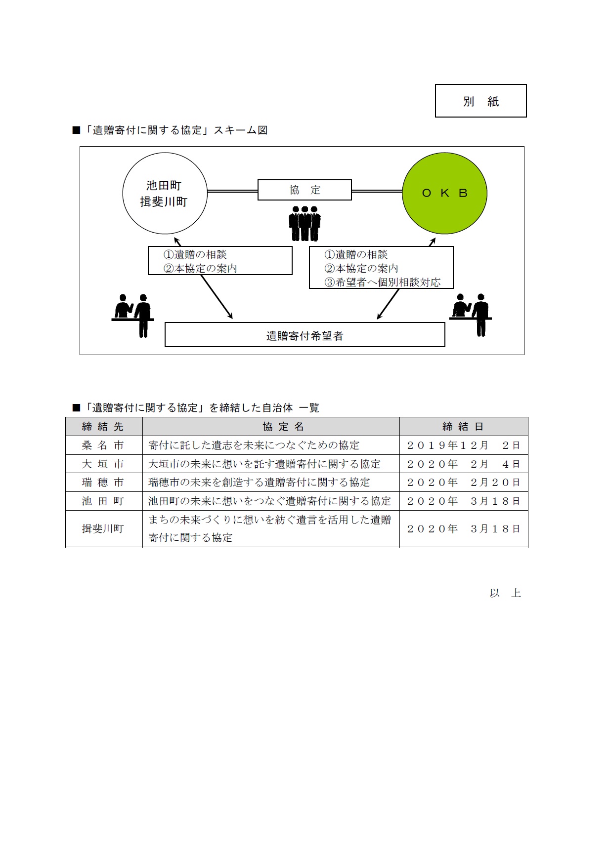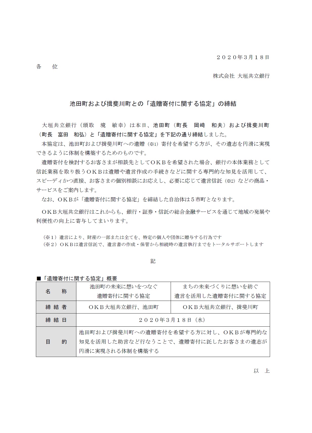 池田町および揖斐川町との「遺贈寄付に関する協定」の締結
