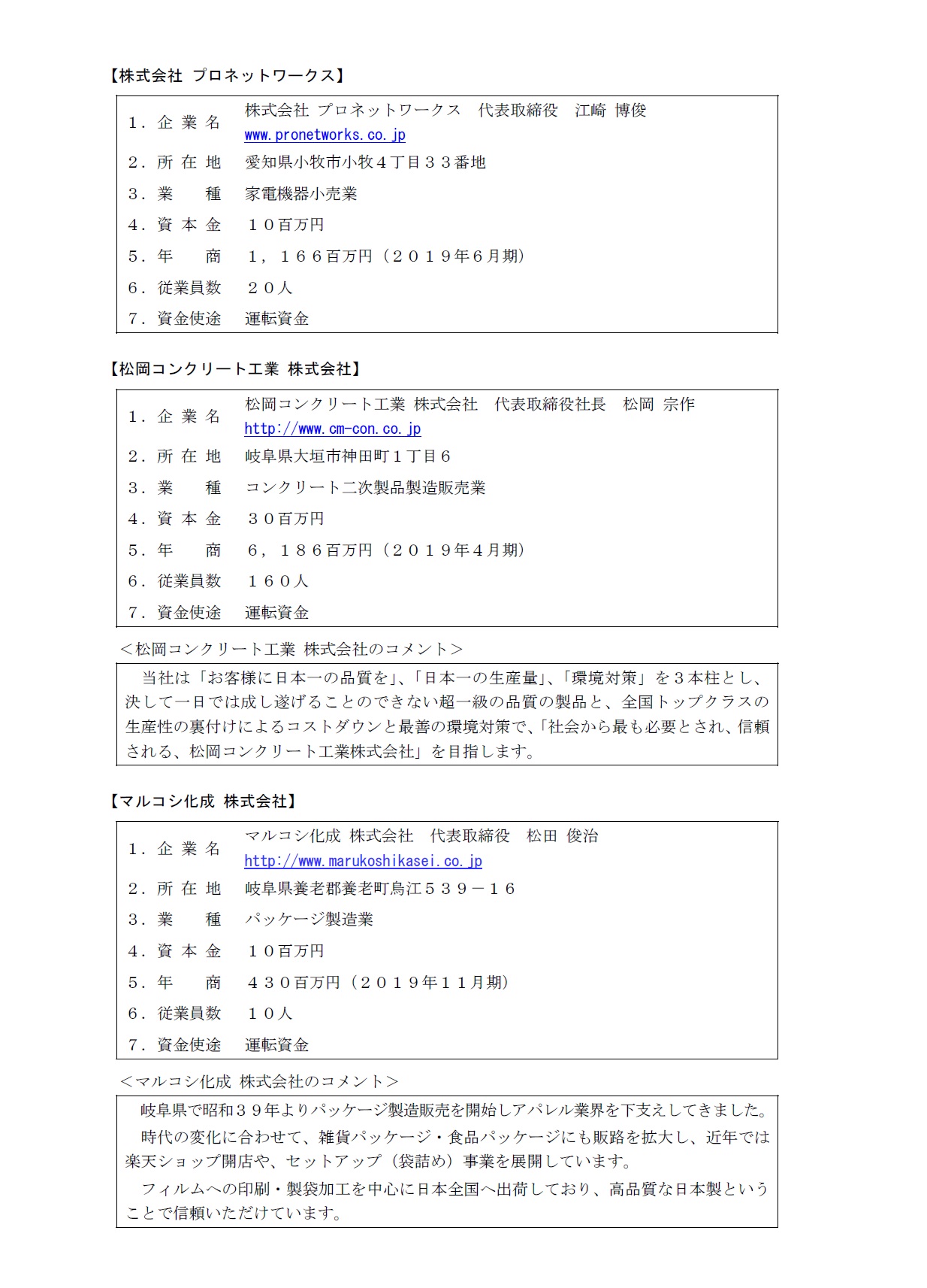 ・マルコシ化成 株式会社