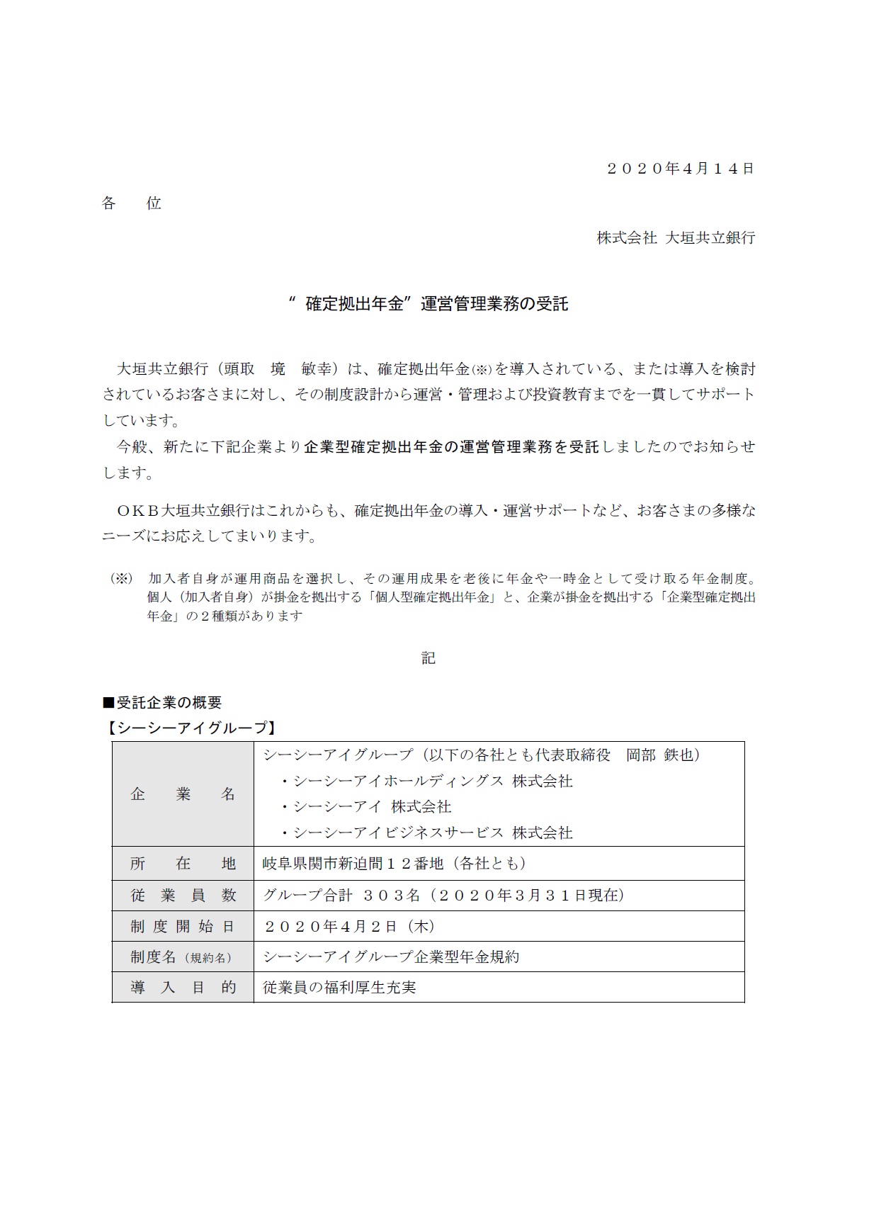 “確定拠出年金”運営管理業務の受託