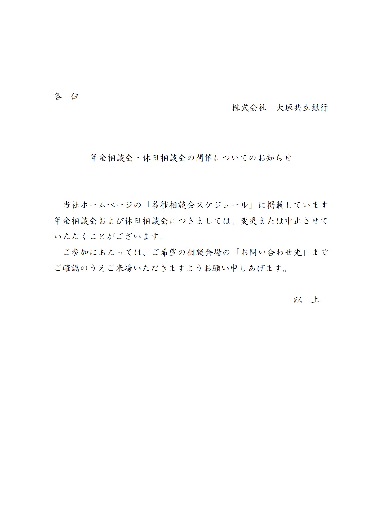 年金相談会・休日相談会の開催についてのお知らせ