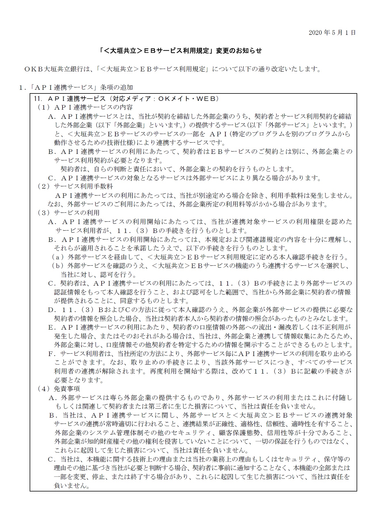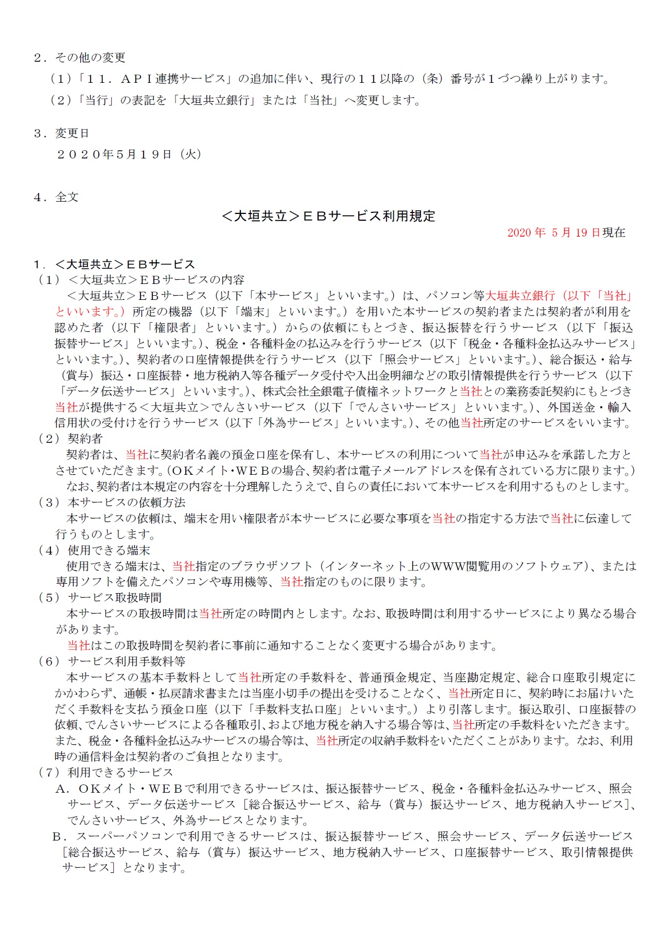 <大垣共立>「EBサービス利用規定」変更のお知らせ
