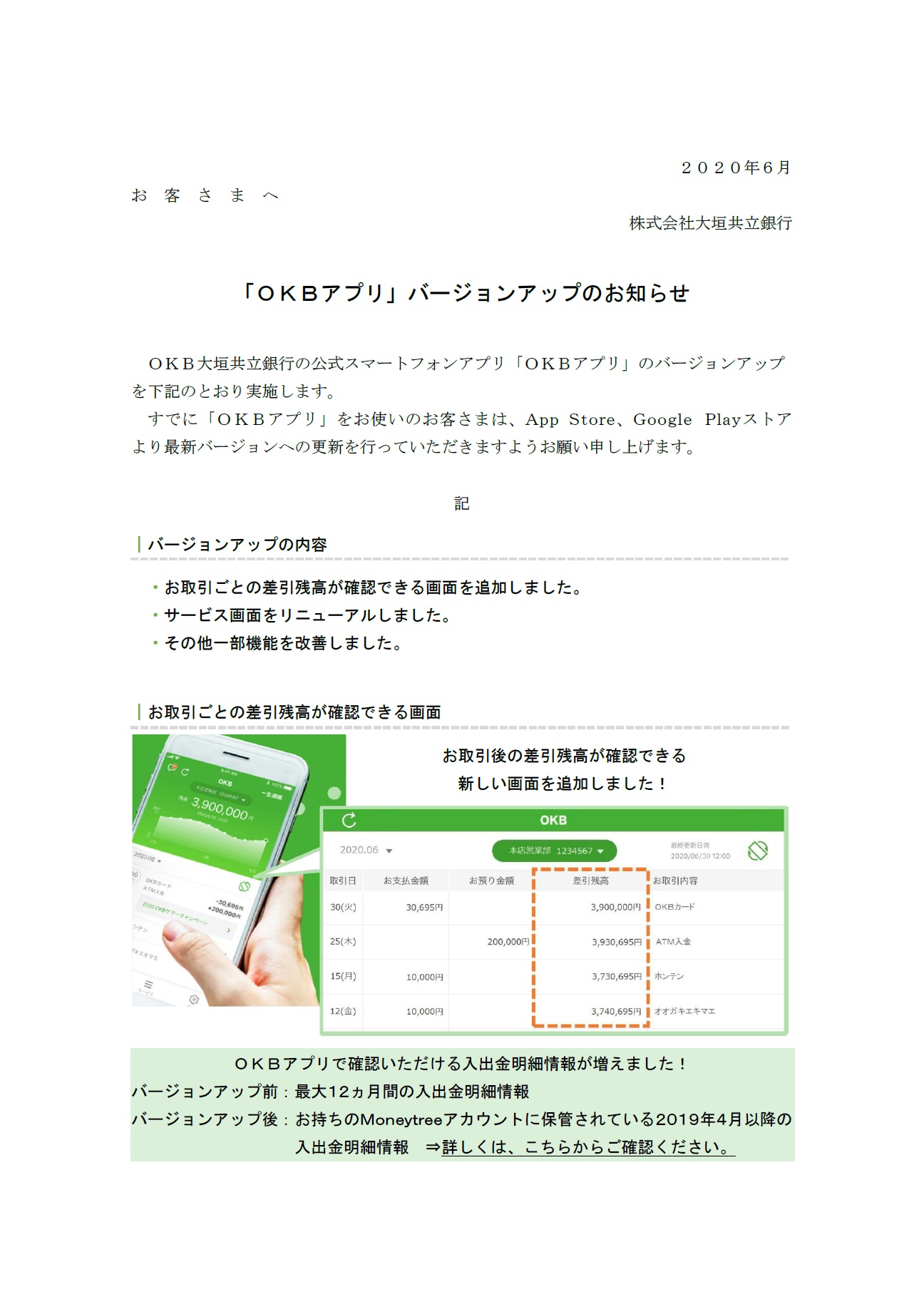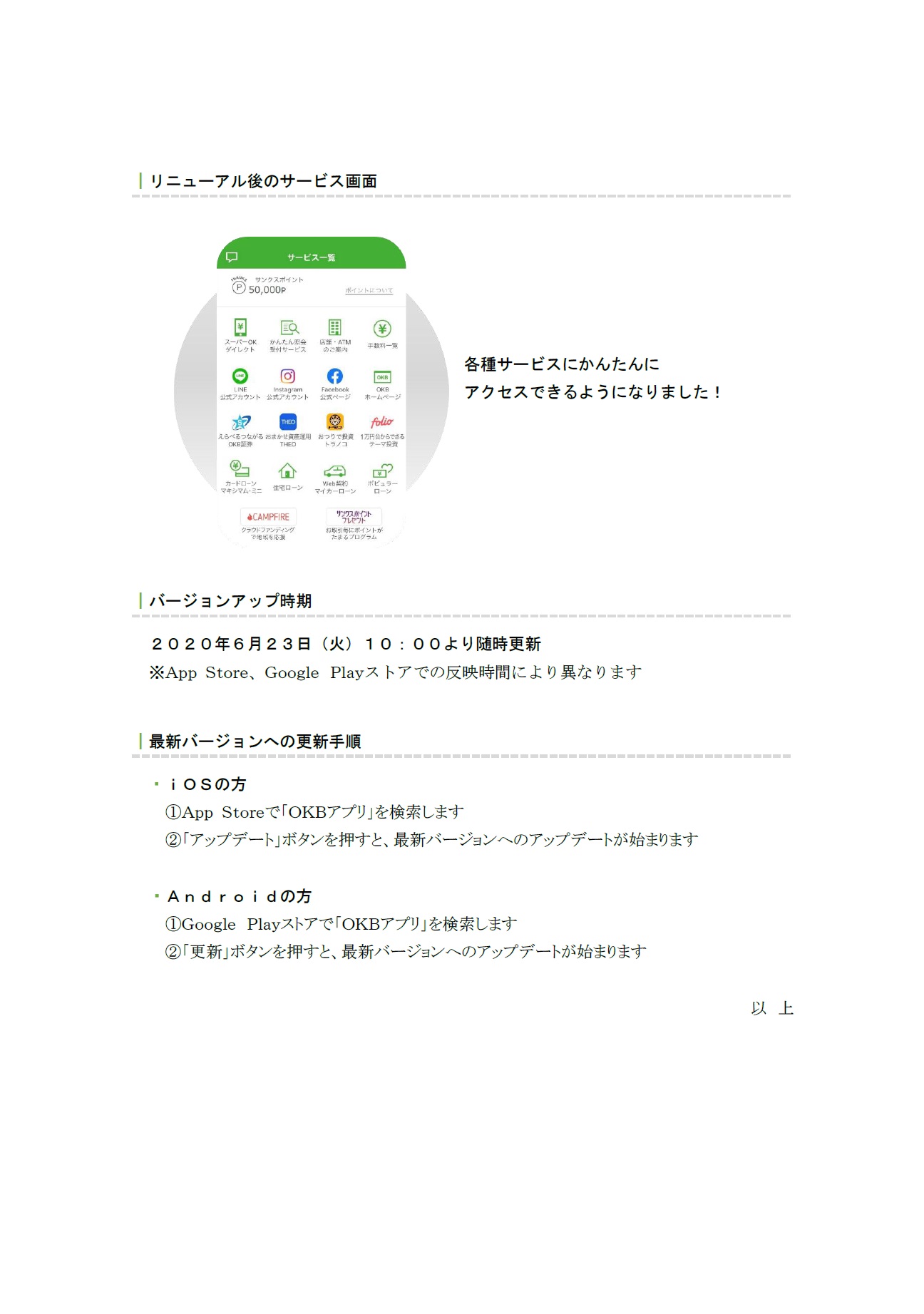 「OKBアプリ」バージョンアップのお知らせ
