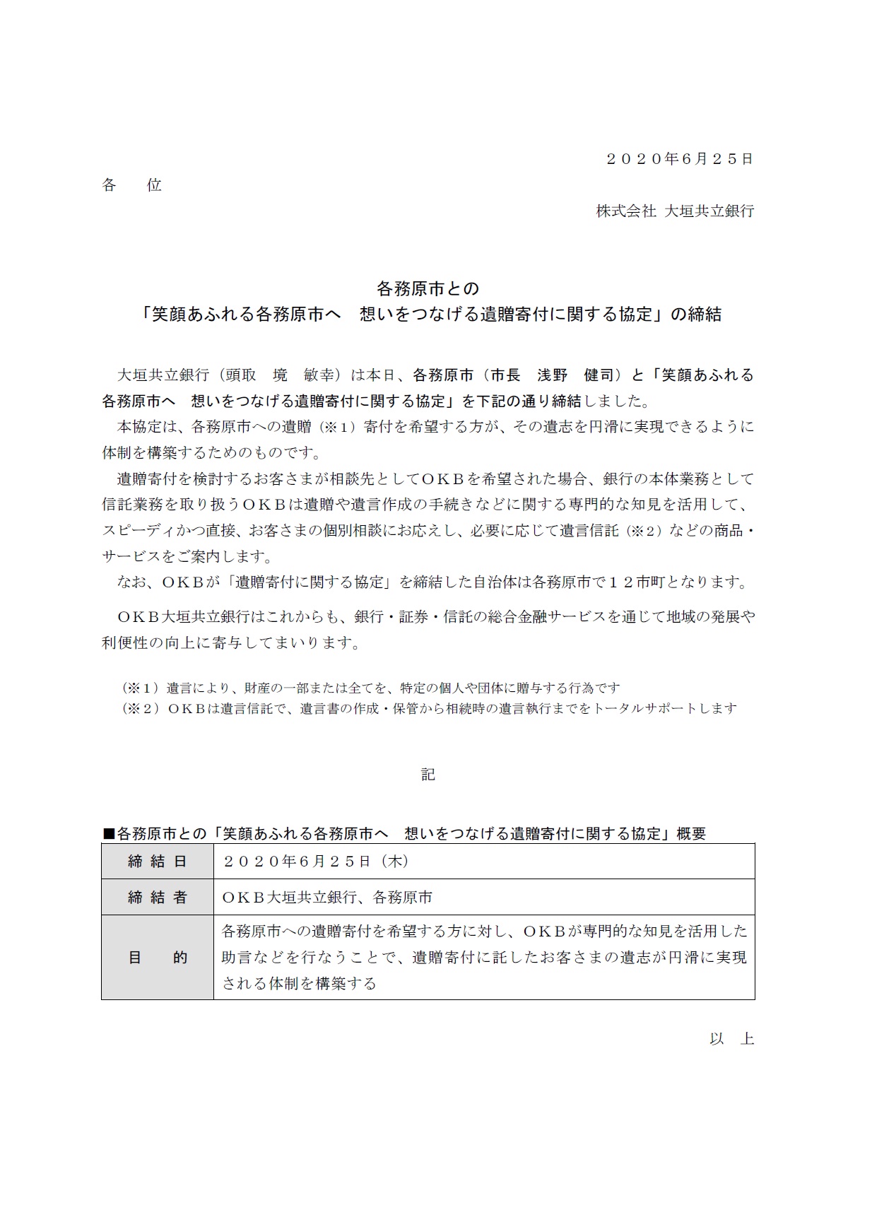 各務原市との「笑顔あふれる各務原市へ 想いをつなげる遺贈寄付に関する協定」の締結