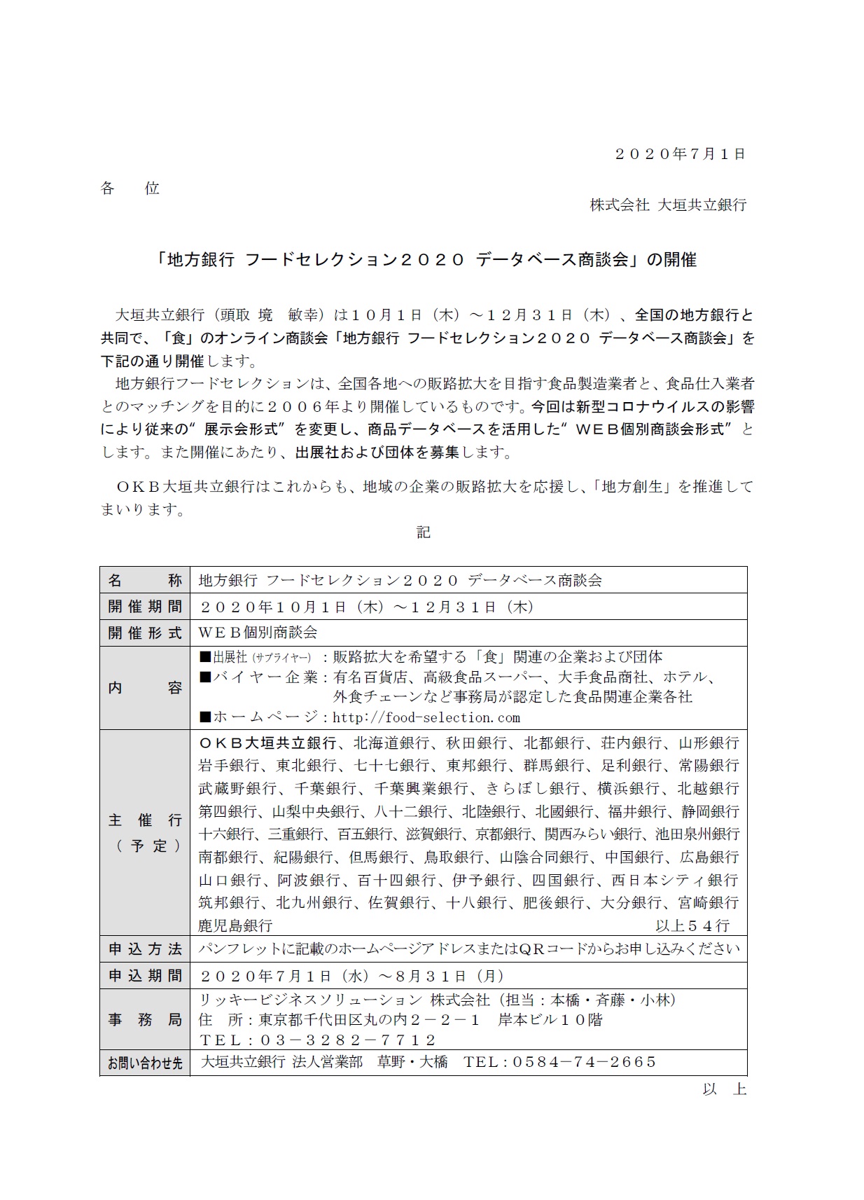 「地方銀行フードセレクション2020 データベース商談会」の開催