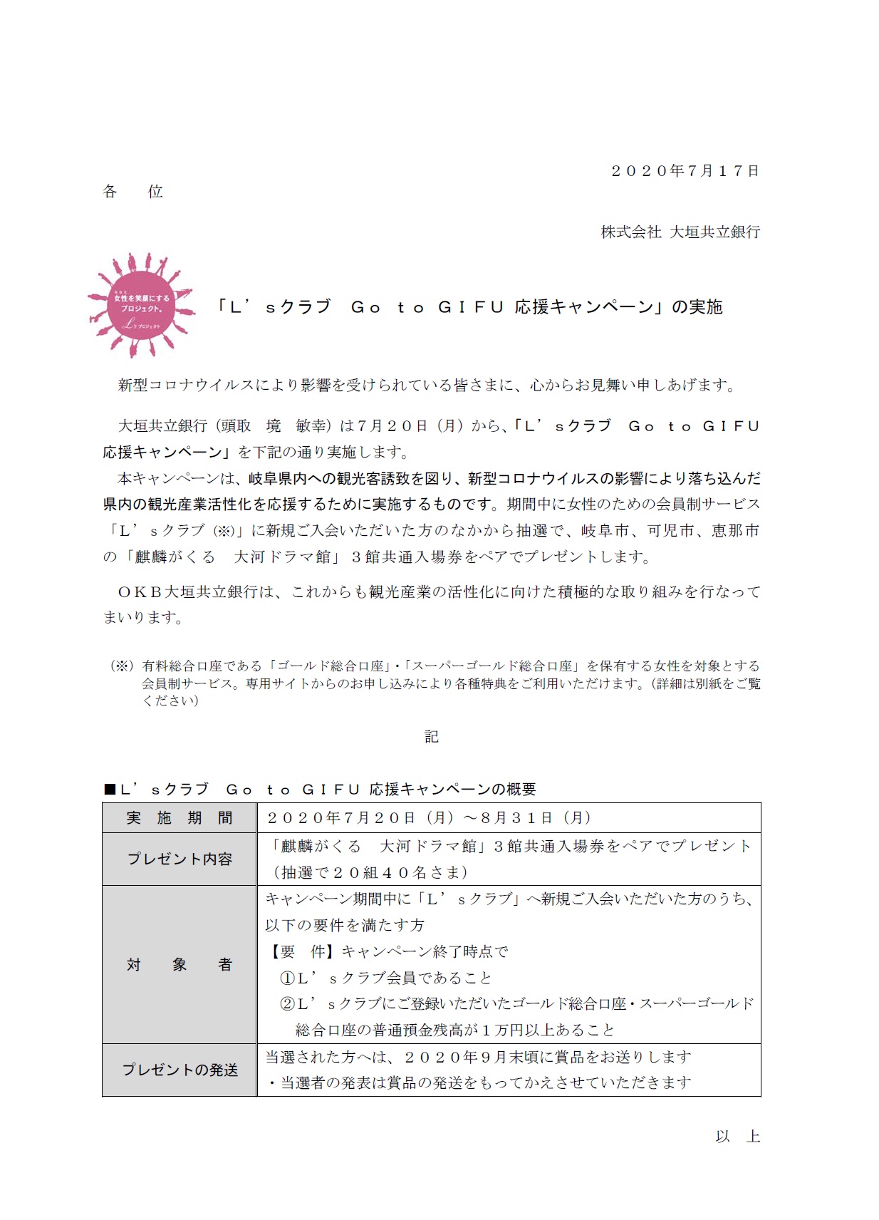 「L’sクラブ Go to GIFU 応援キャンペーン」の実施