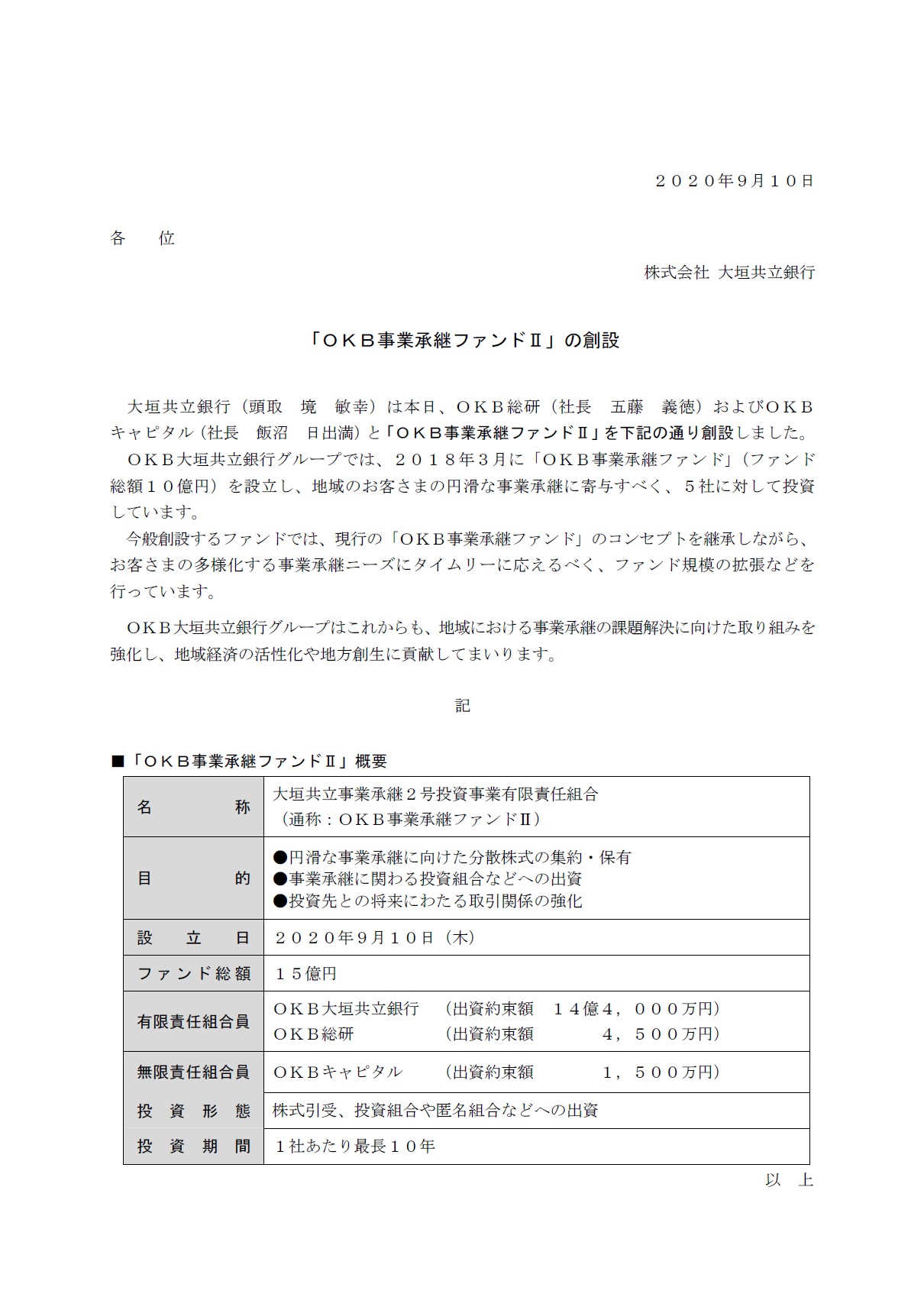 「OKB事業承継ファンドⅡ」の創設