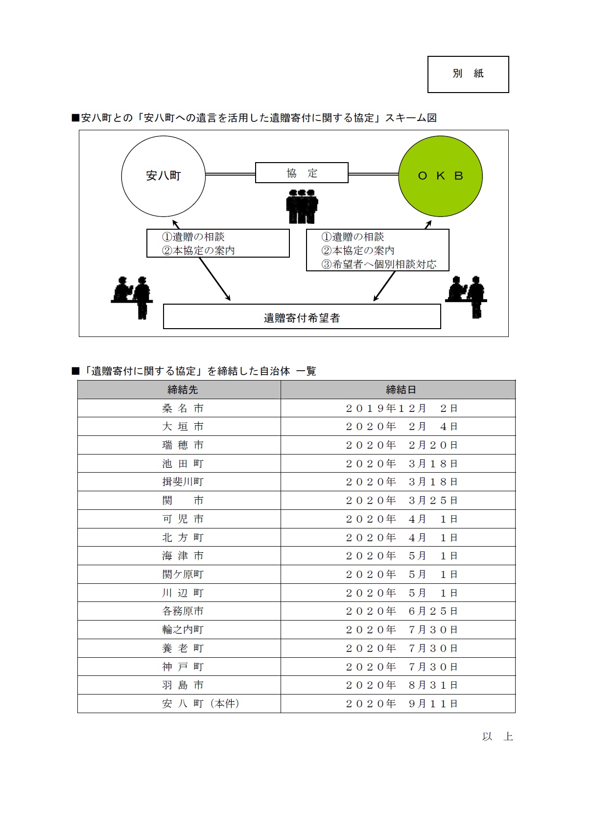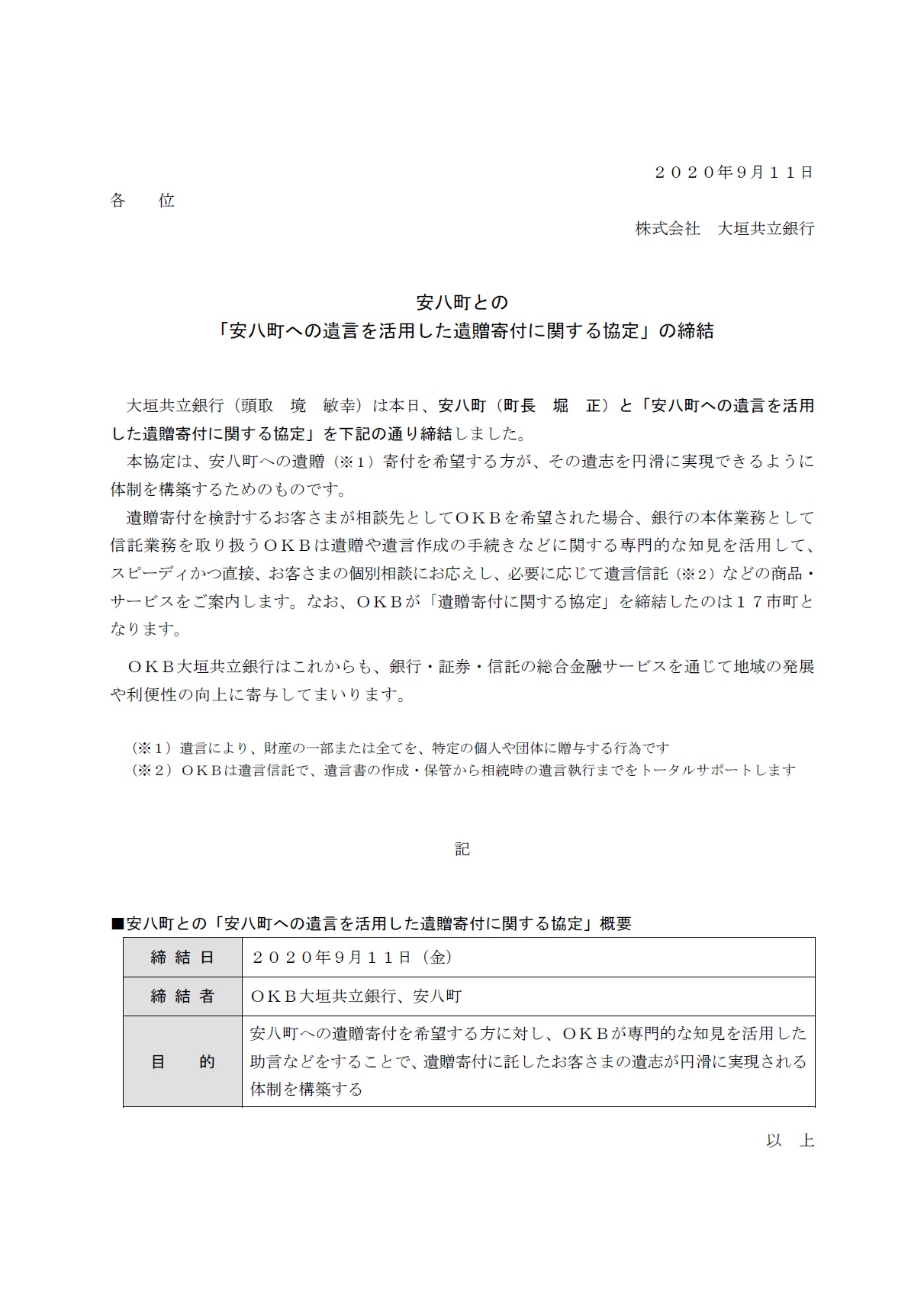 安八町との「安八町への遺言を活用した遺贈寄付に関する協定」の締結