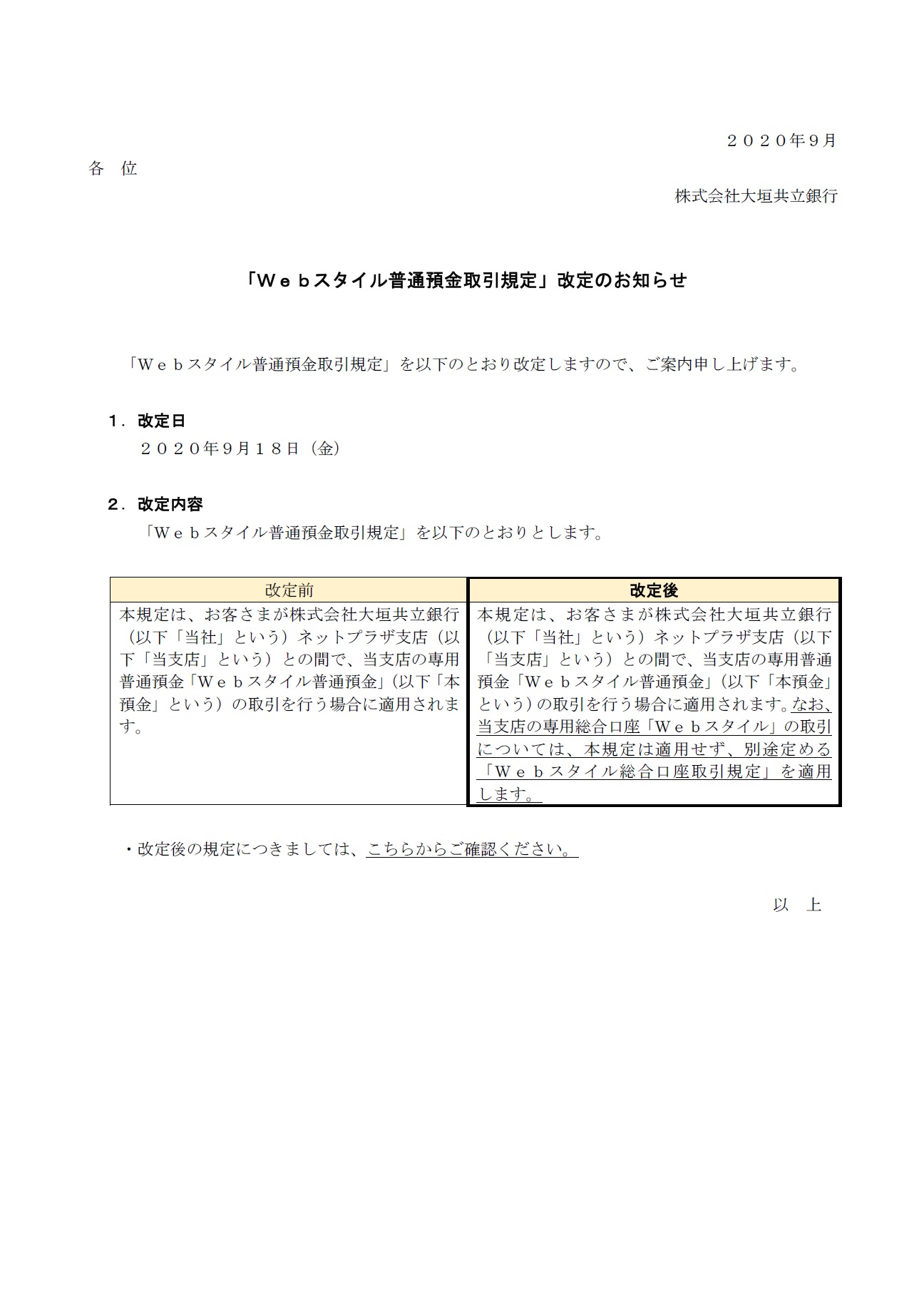 「Webスタイル普通預金取引規定」改定のお知らせ