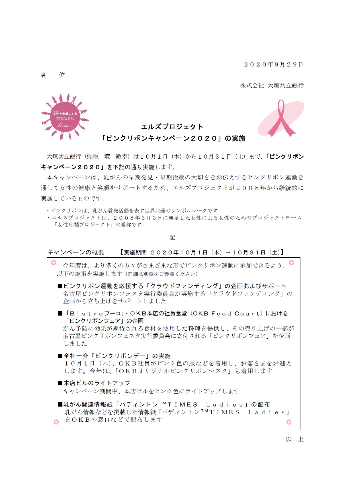 エルズプロジェクト「ピンクリボンキャンペーン2020」の実施