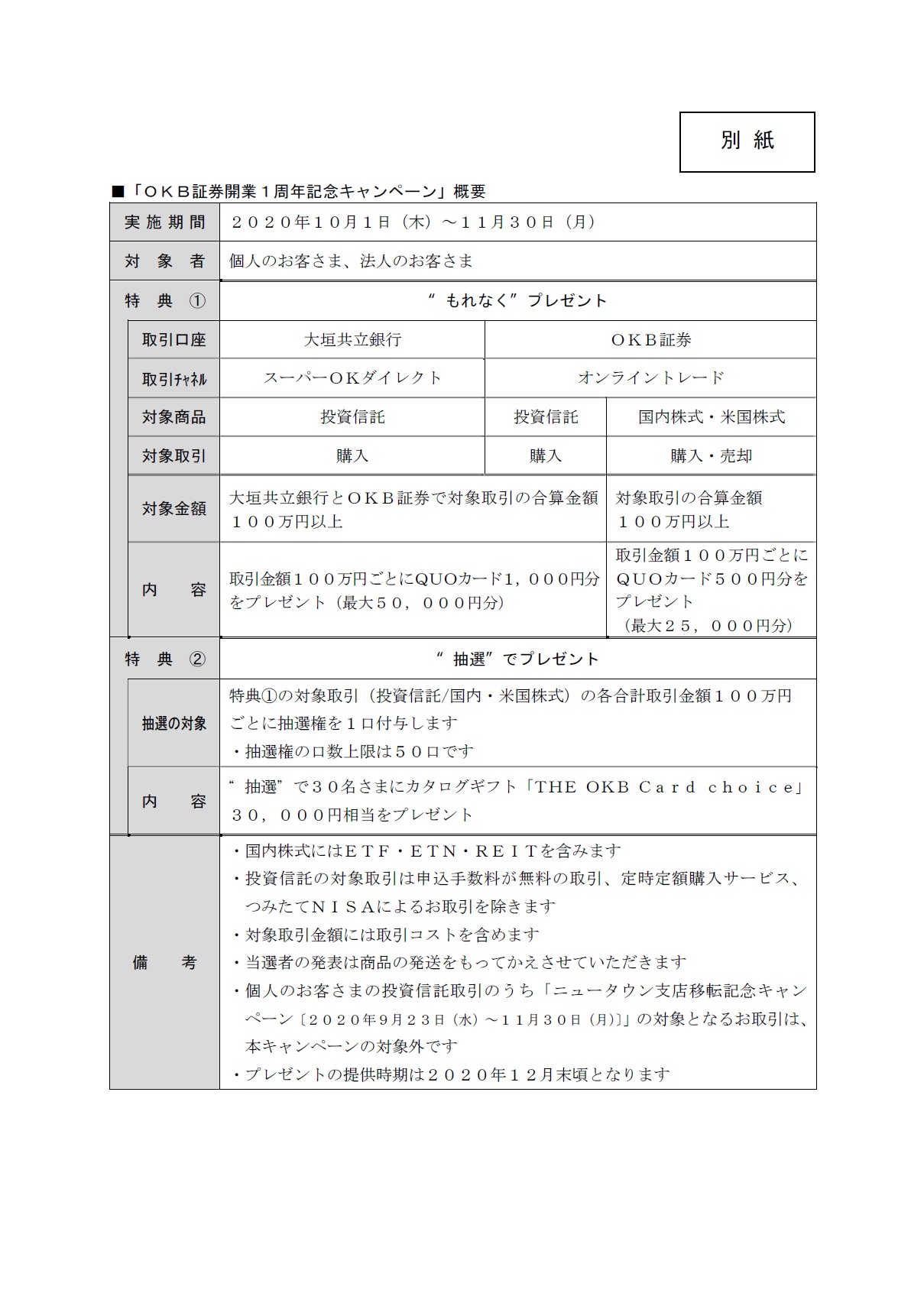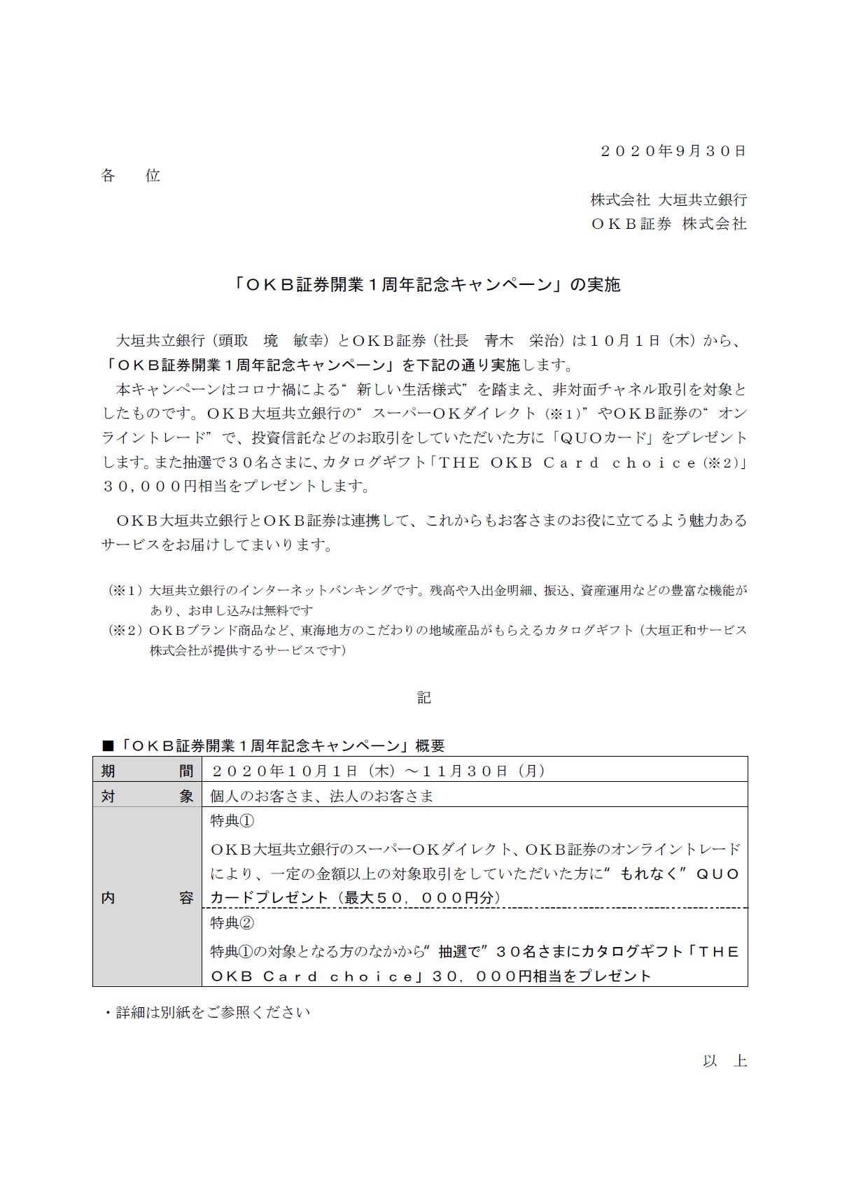 「OKB証券開業1周年記念キャンペーン」の実施