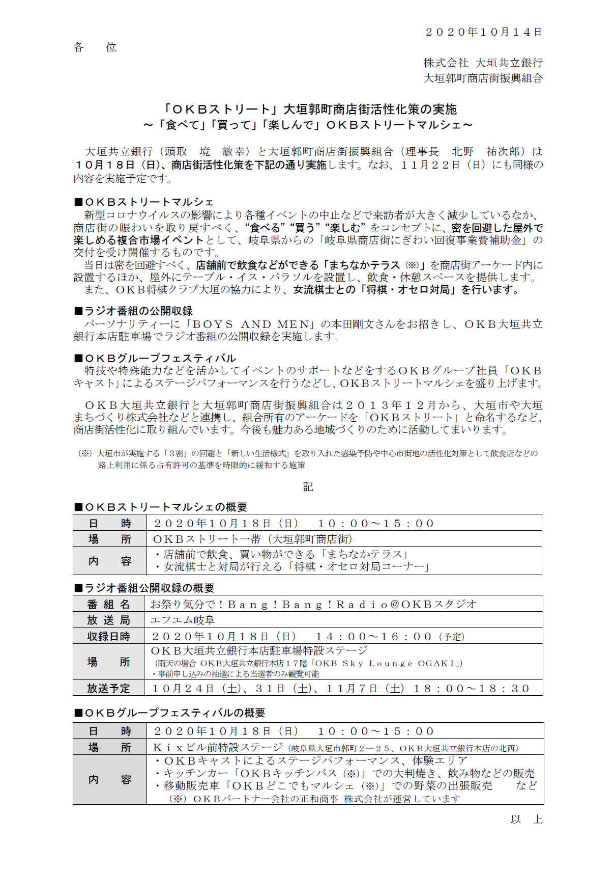 「OKBストリート」大垣郭町商店街活性化策の実施~「食べて」「買って」「楽しんで」OKBストリートマルシェ~