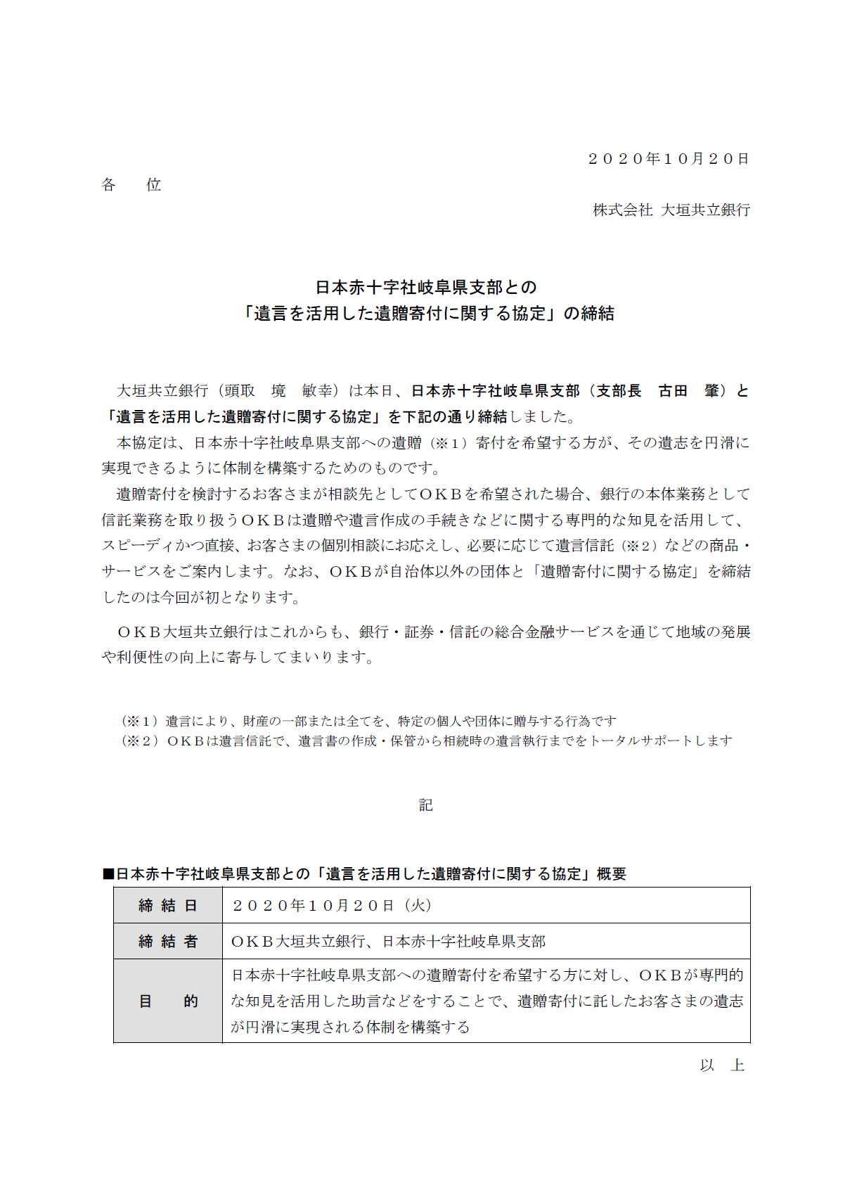 日本赤十字社岐阜県支部との「遺言を活用した 遺贈寄付に関する協定 」の締結