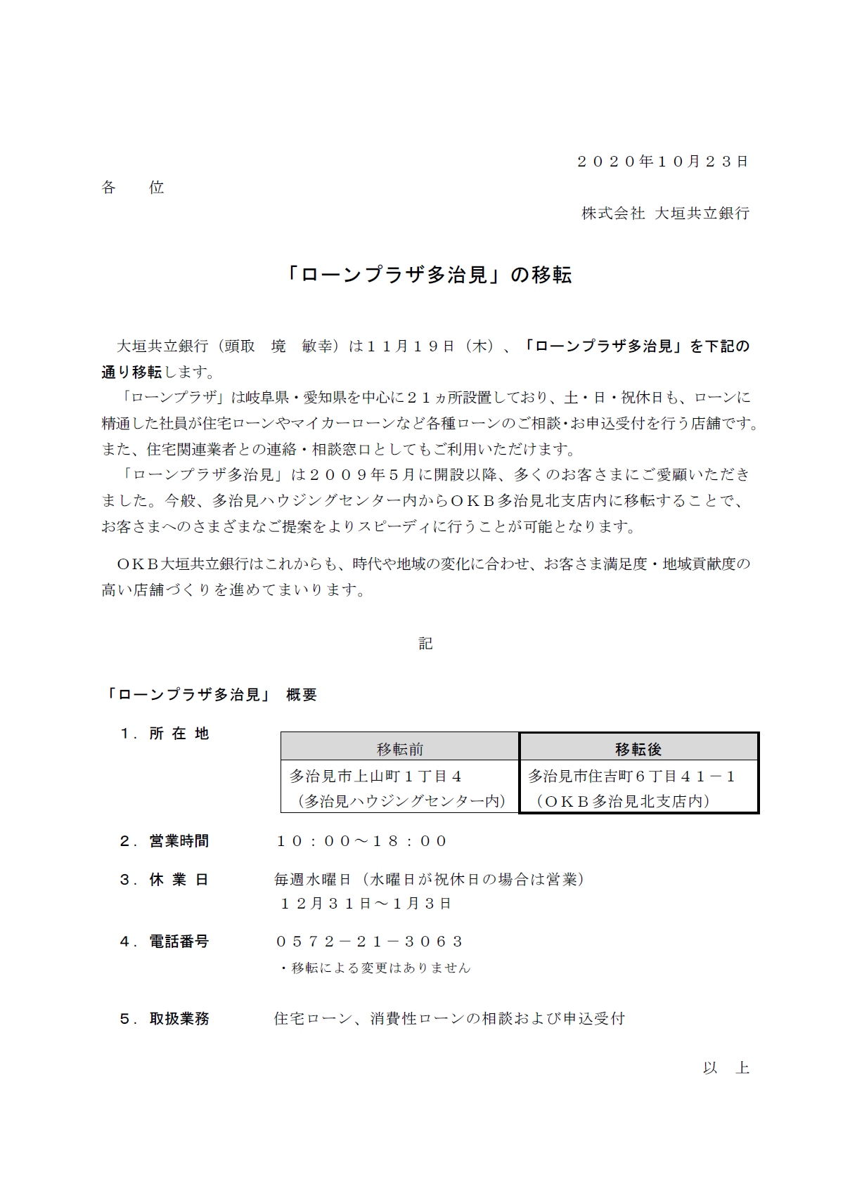 「ローンプラザ多治見」の移転