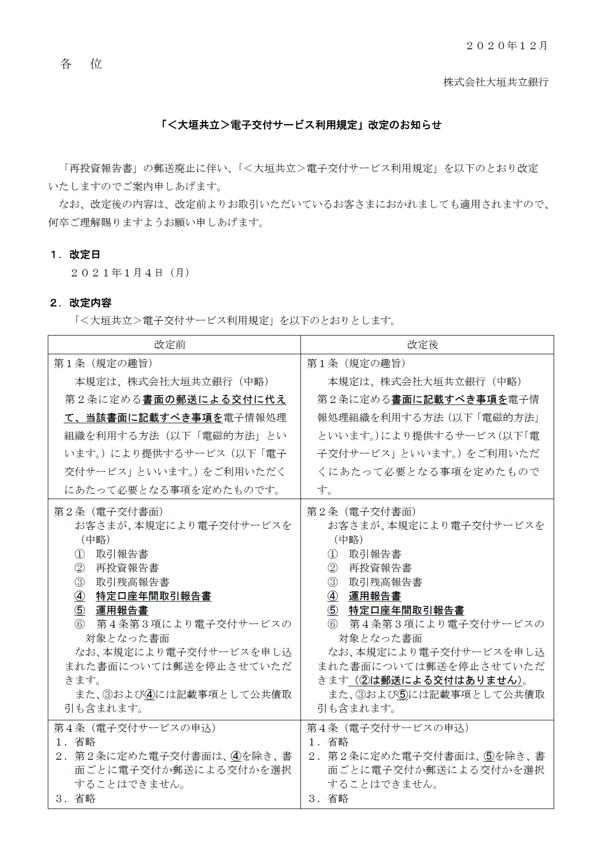 「<大垣共立>電子交付サービス利用規定」改定のお知らせ