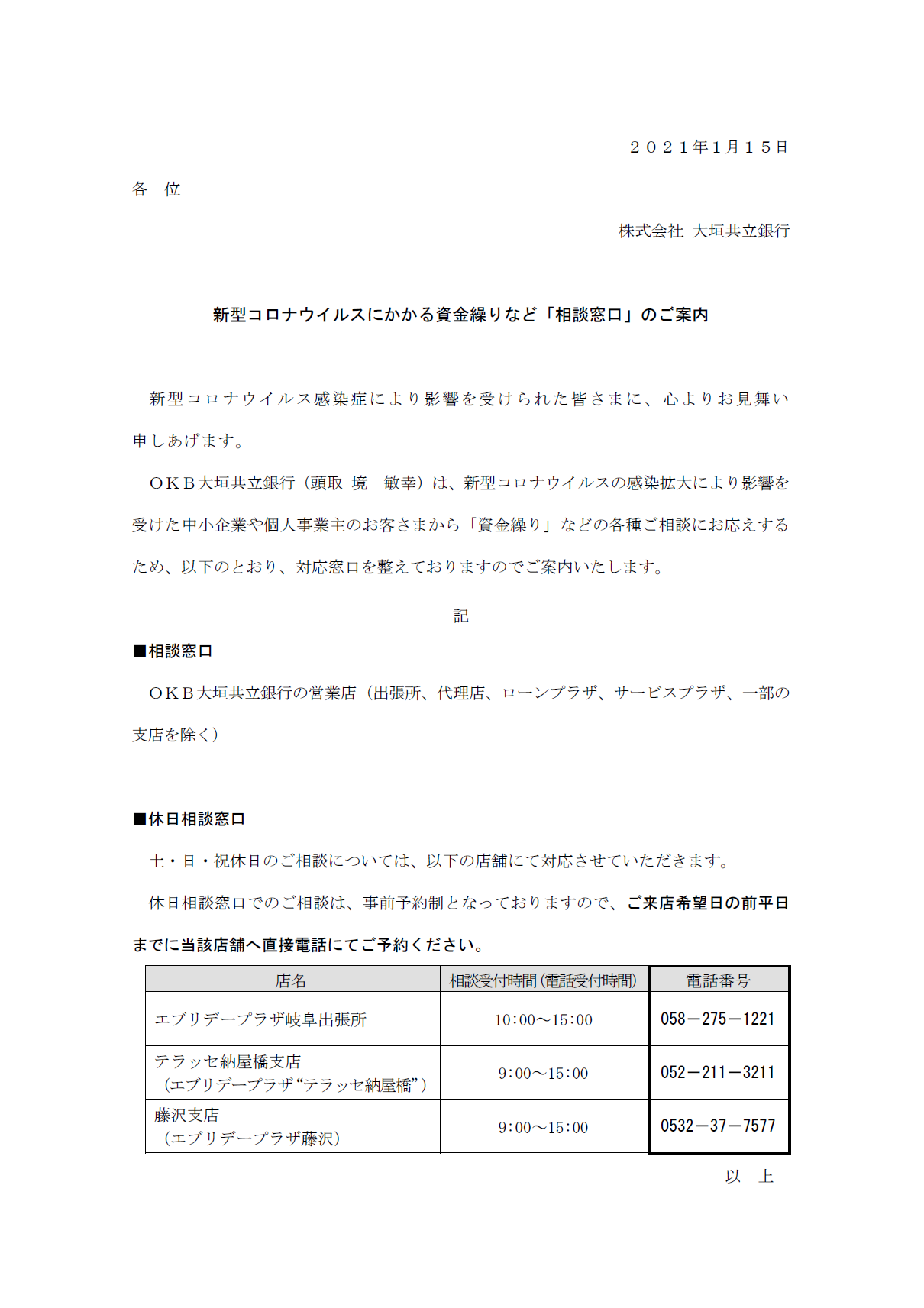 新型コロナウイルスにかかる資金繰りなど「相談窓口」のご案内