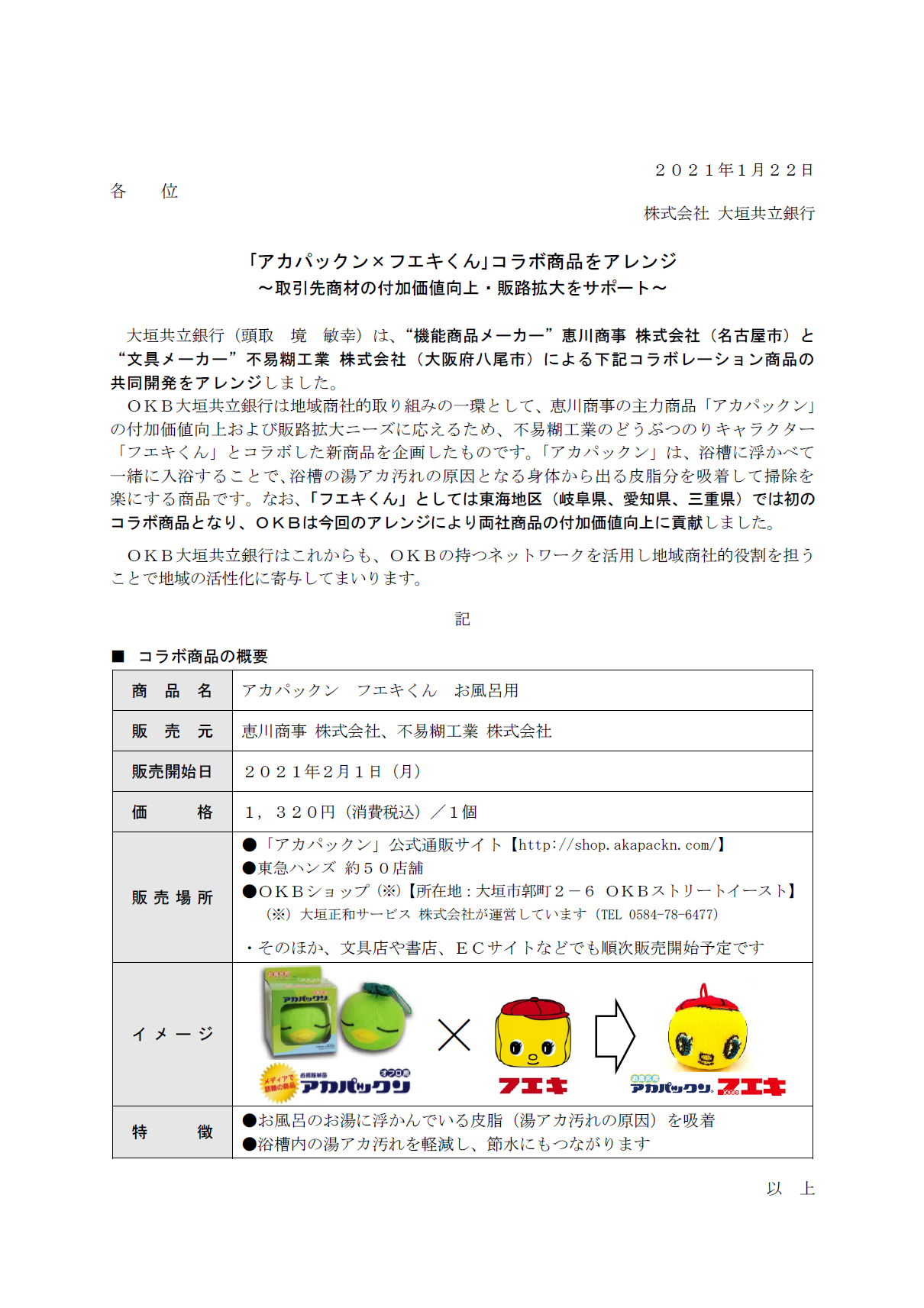 「アカパックン×フエキくん」コラボ商品をアレンジ ~取引先商材の付加価値向上・販路拡大をサポート~