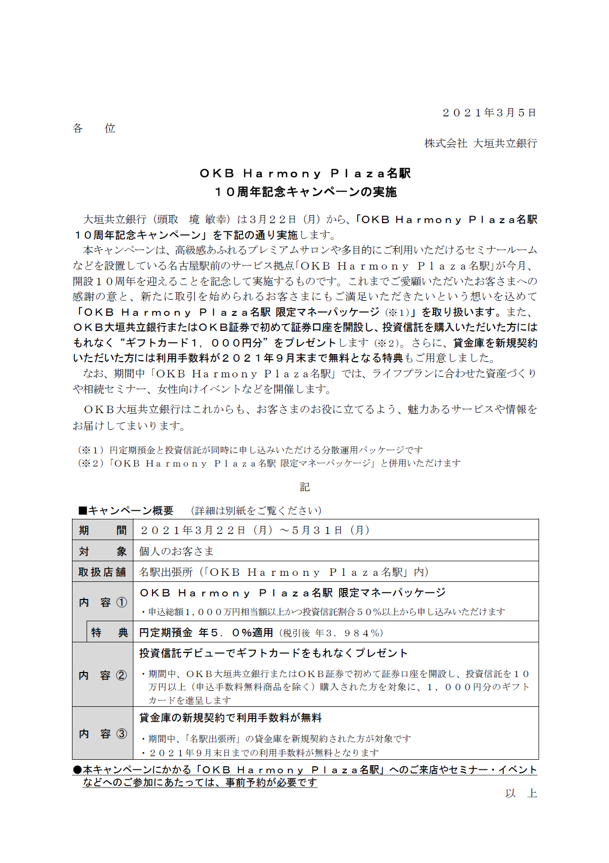 OKB Harmony Plaza名駅 10周年記念キャンペーンの実施