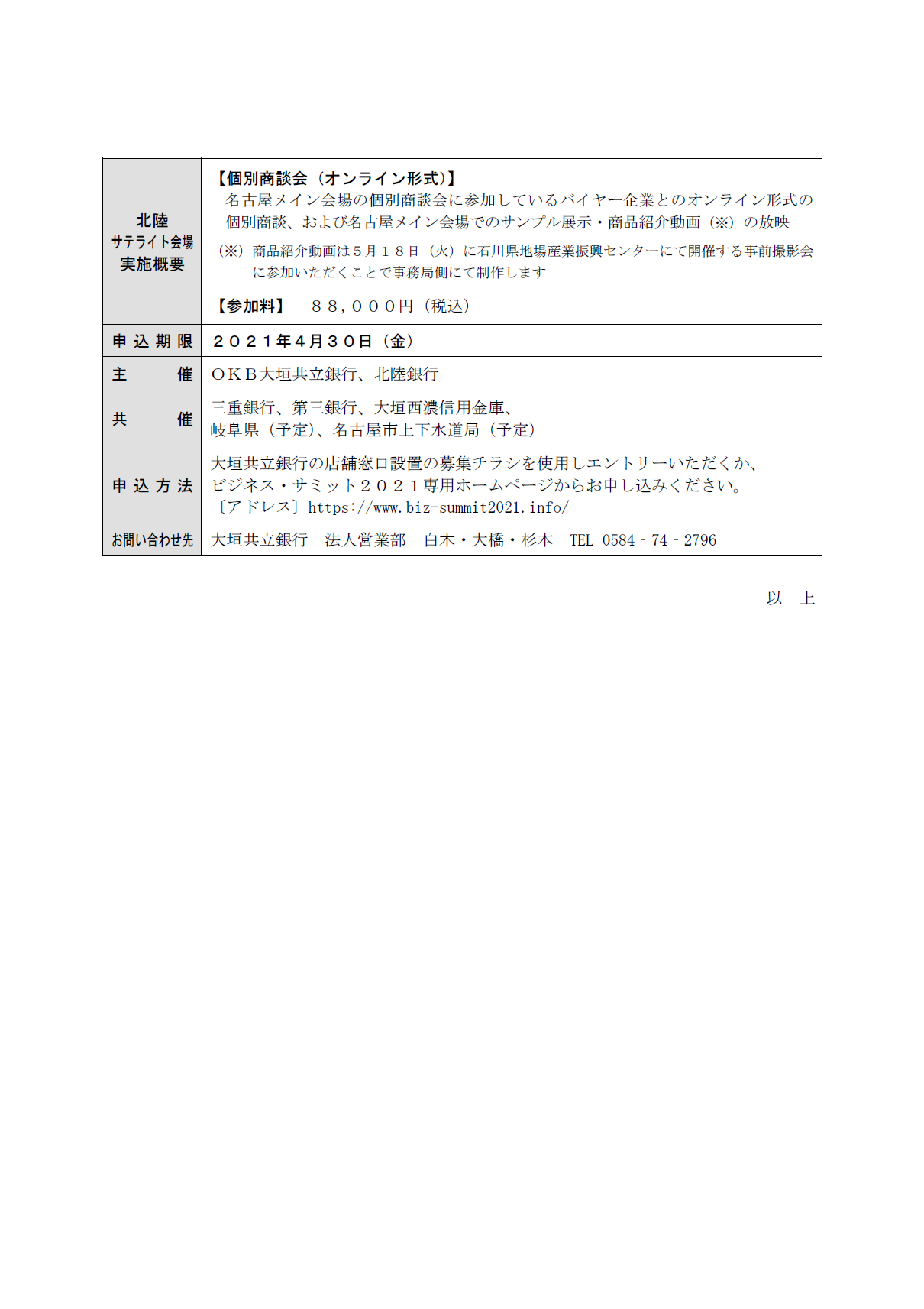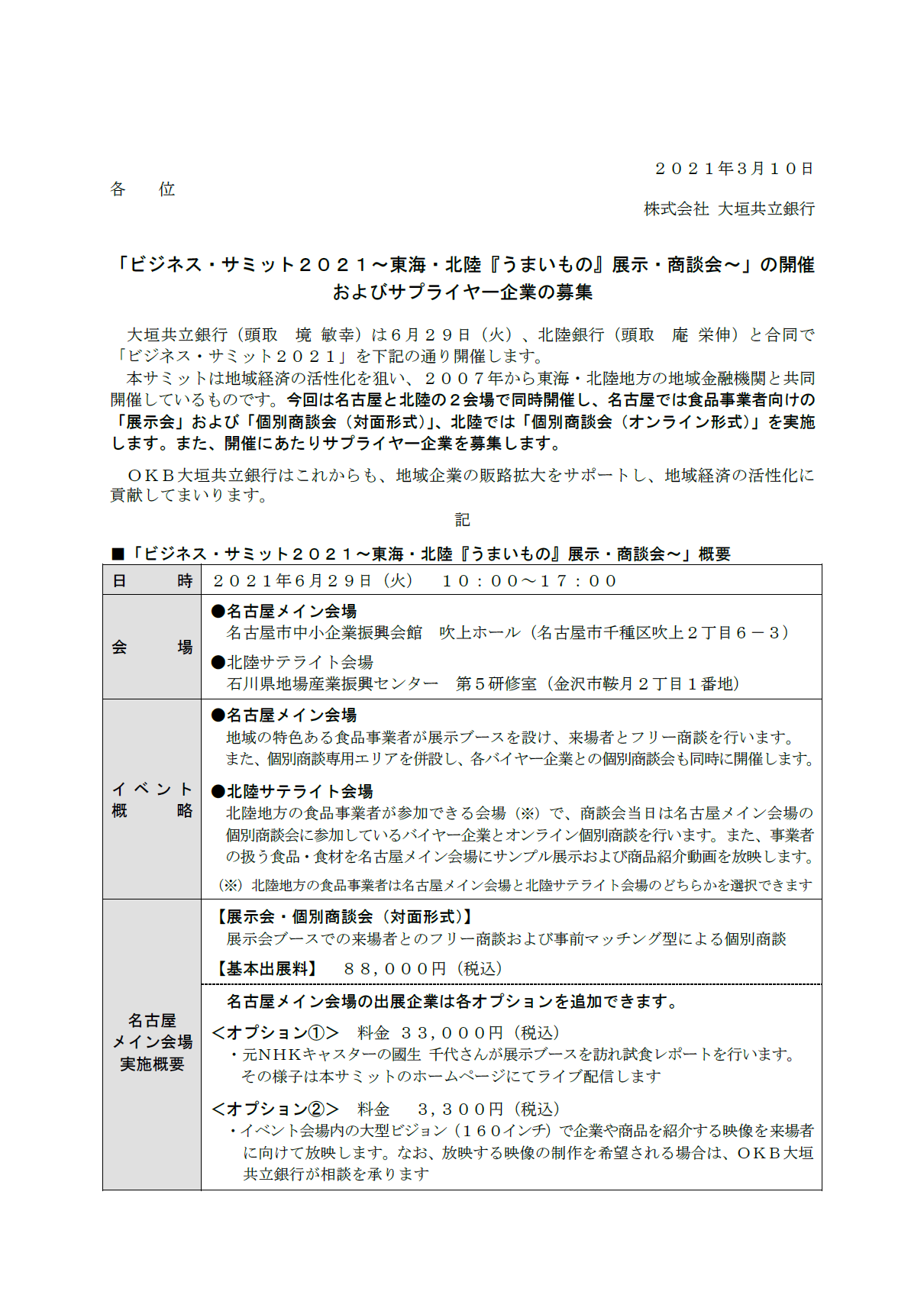 「ビジネス・サミット2021~東海・北陸『うまいもの』展示・商談会~」の開催およびサプライヤー企業の募集