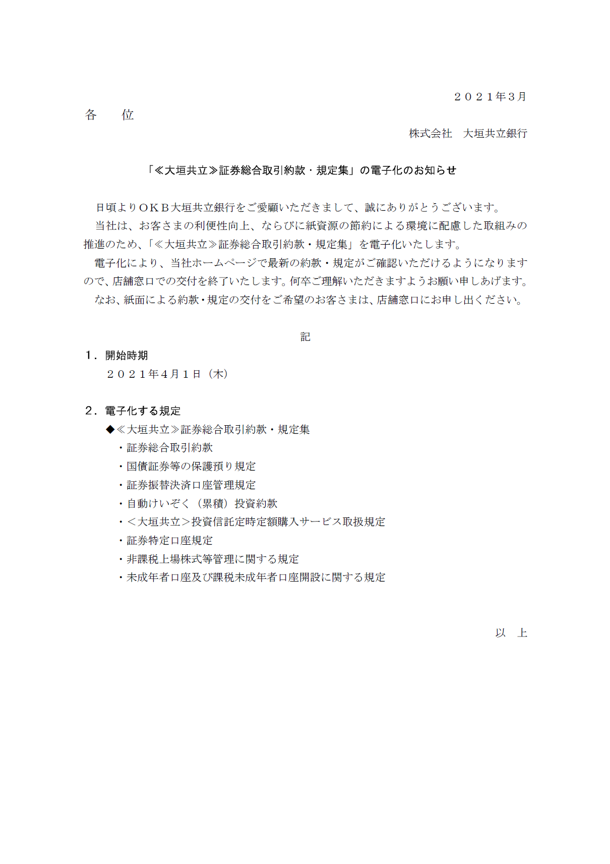 「《大垣共立》証券総合取引約款・規定集」の電子化のお知らせ
