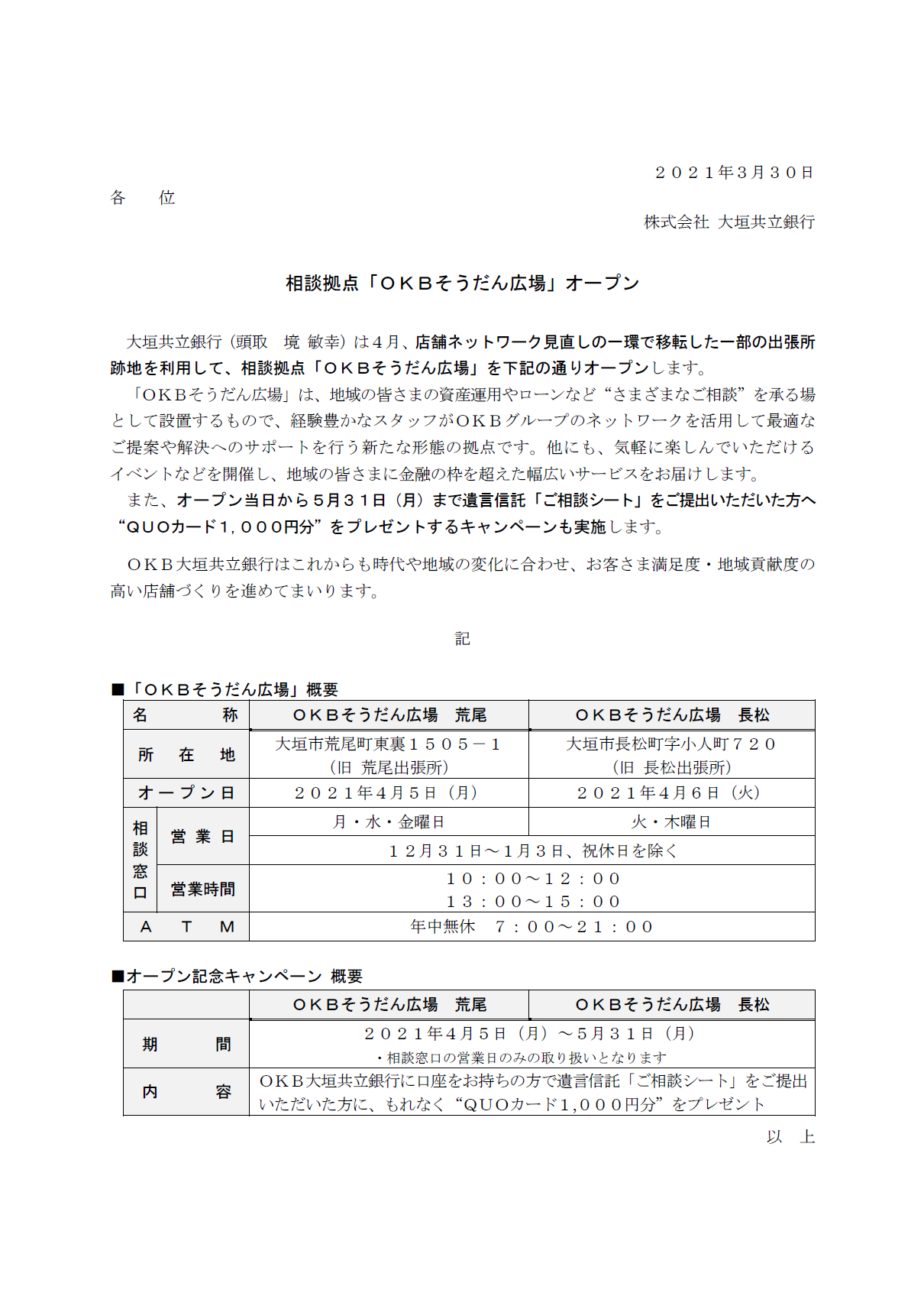 相談拠点「OKBそうだん広場」オープン