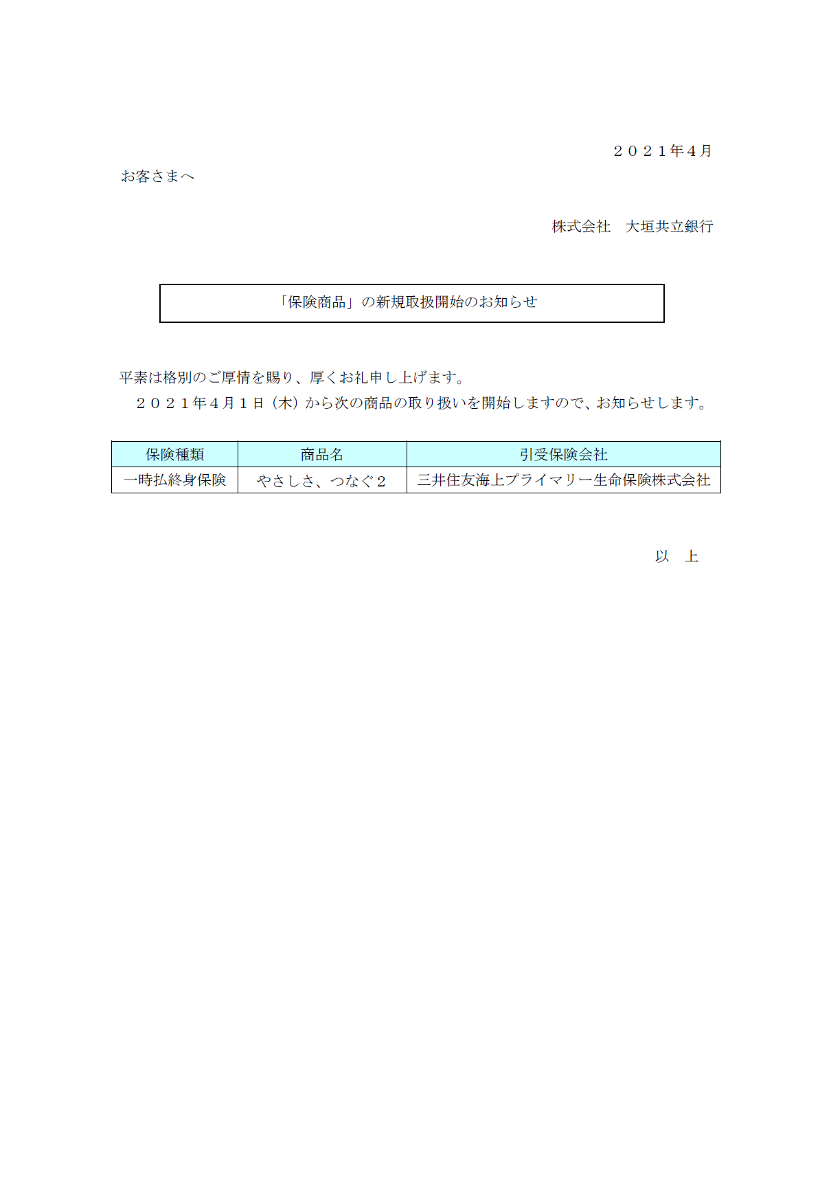 「保険商品」の新規取扱開始のお知らせ