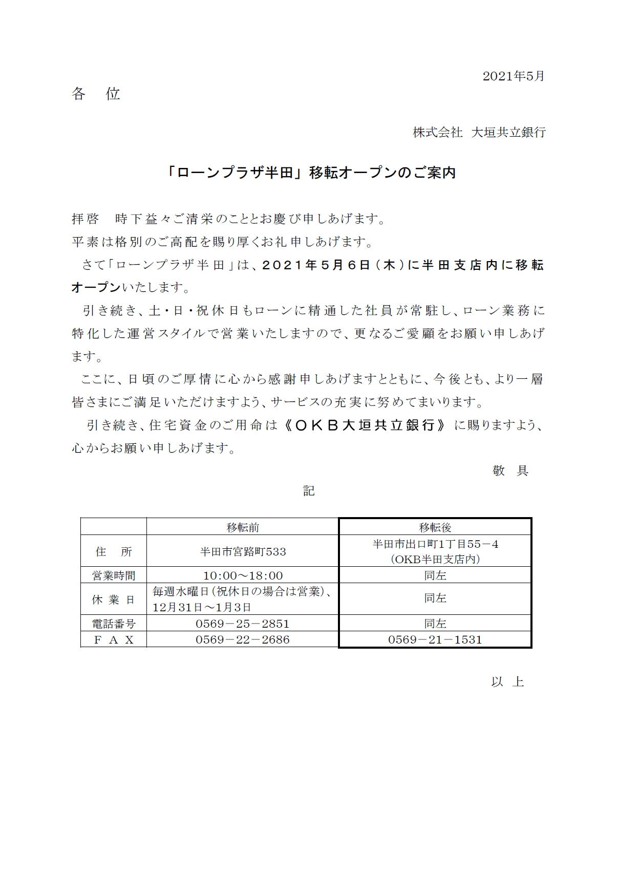 「ローンプラザ半田」移転オープンのご案内
