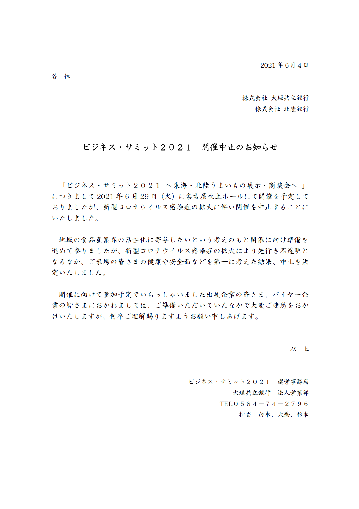 ビジネス・サミット2021 開催中止のお知らせ
