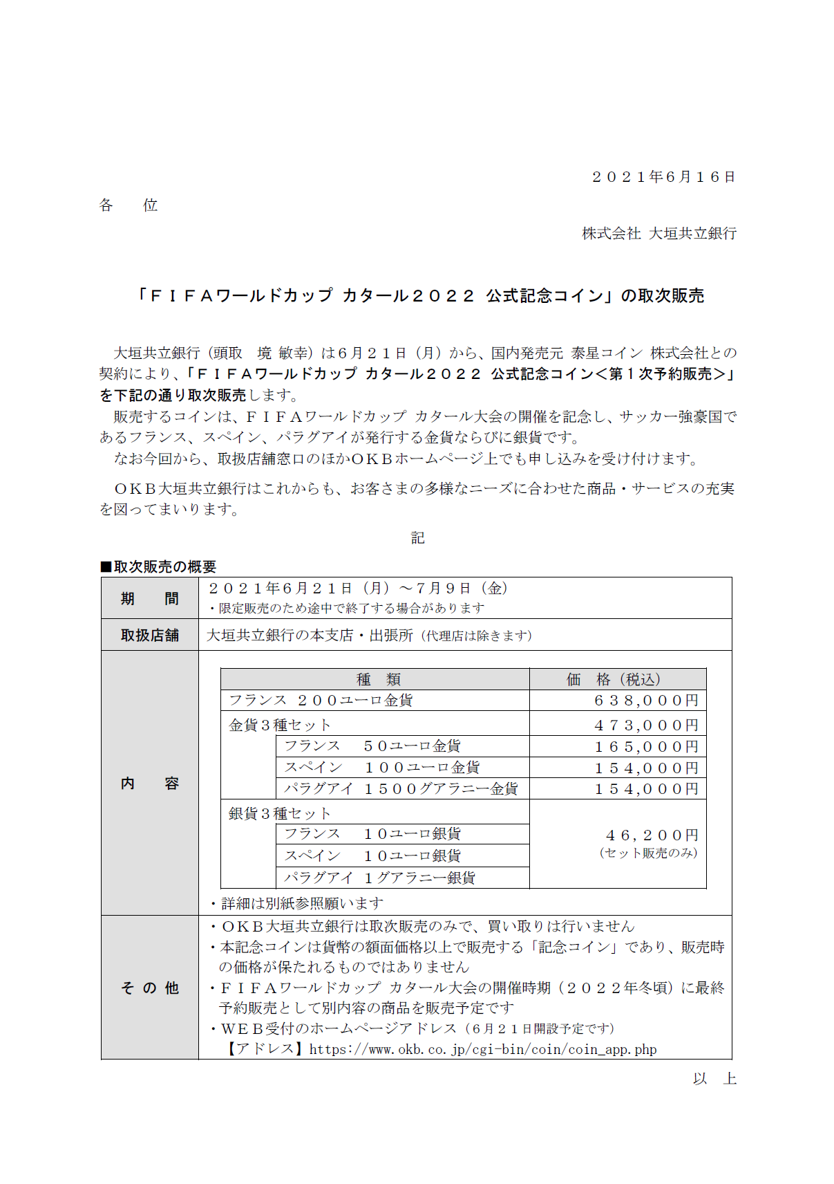 「FIFAワールドカップ カタール2022 公式記念コイン」の取次販売