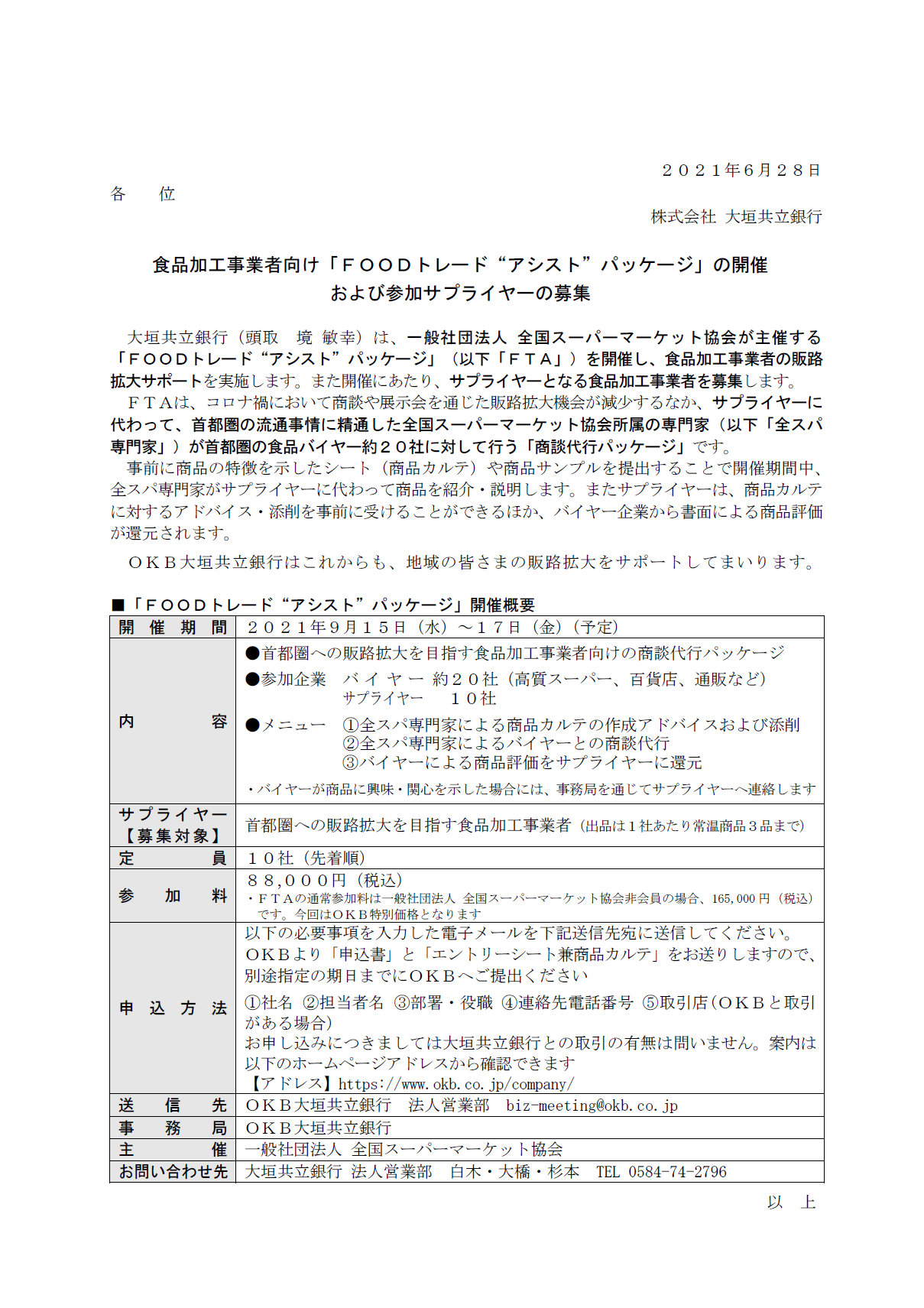 食品加工事業者向け「FOODトレード“アシスト”パッケージ」の開催および参加サプライヤーの募集