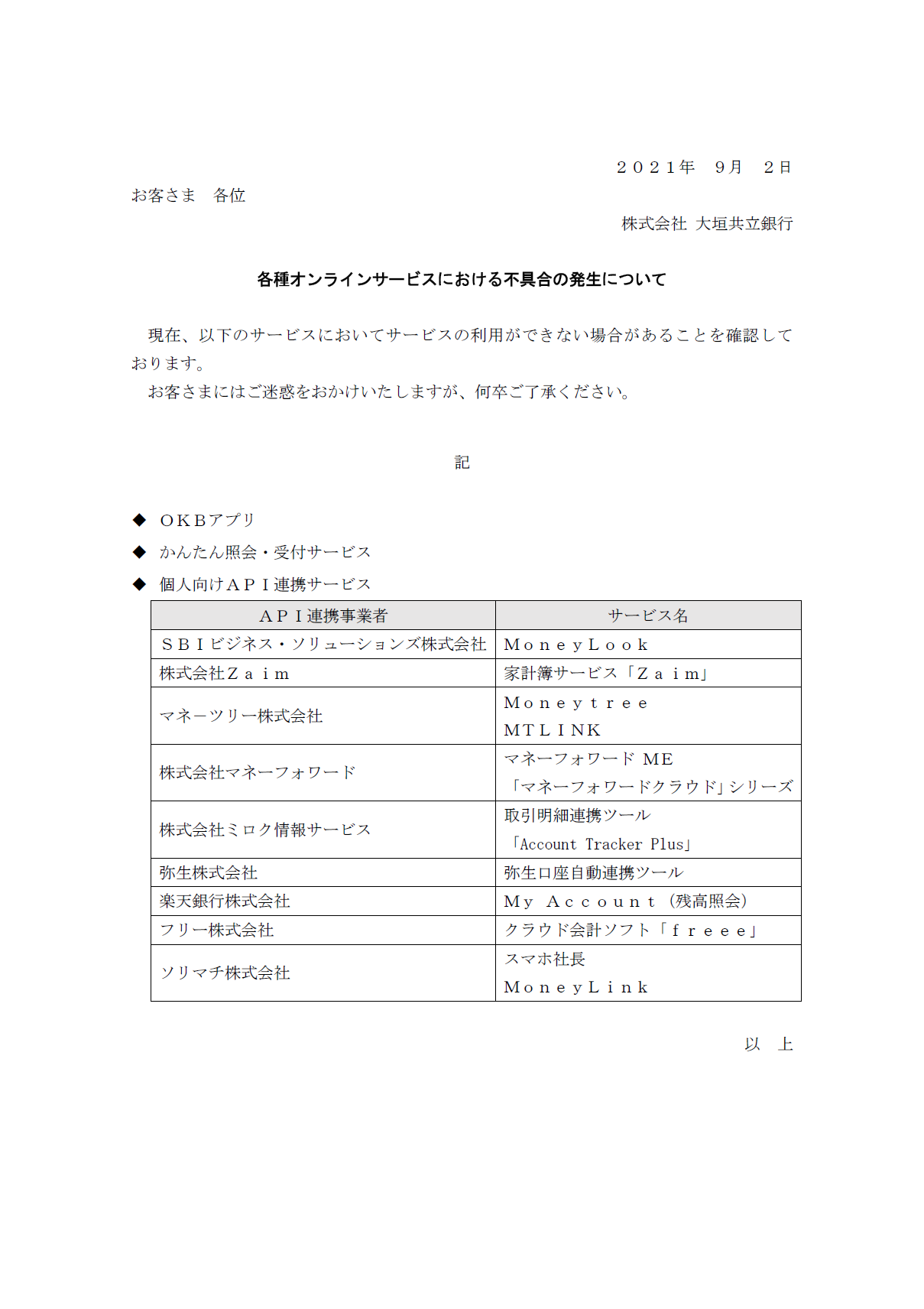 各種オンラインサービスにおける不具合の発生について