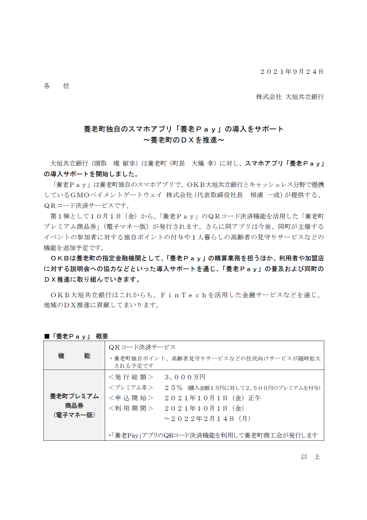 養老町独自のスマホアプリ「養老Pay」の導入をサポート