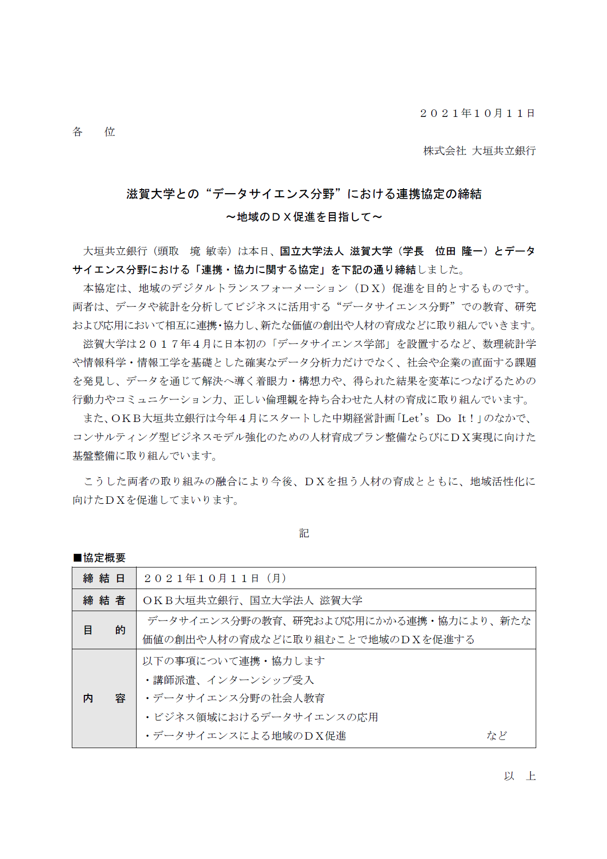 滋賀大学との“データサイエンス分野”における連携協定の締結
