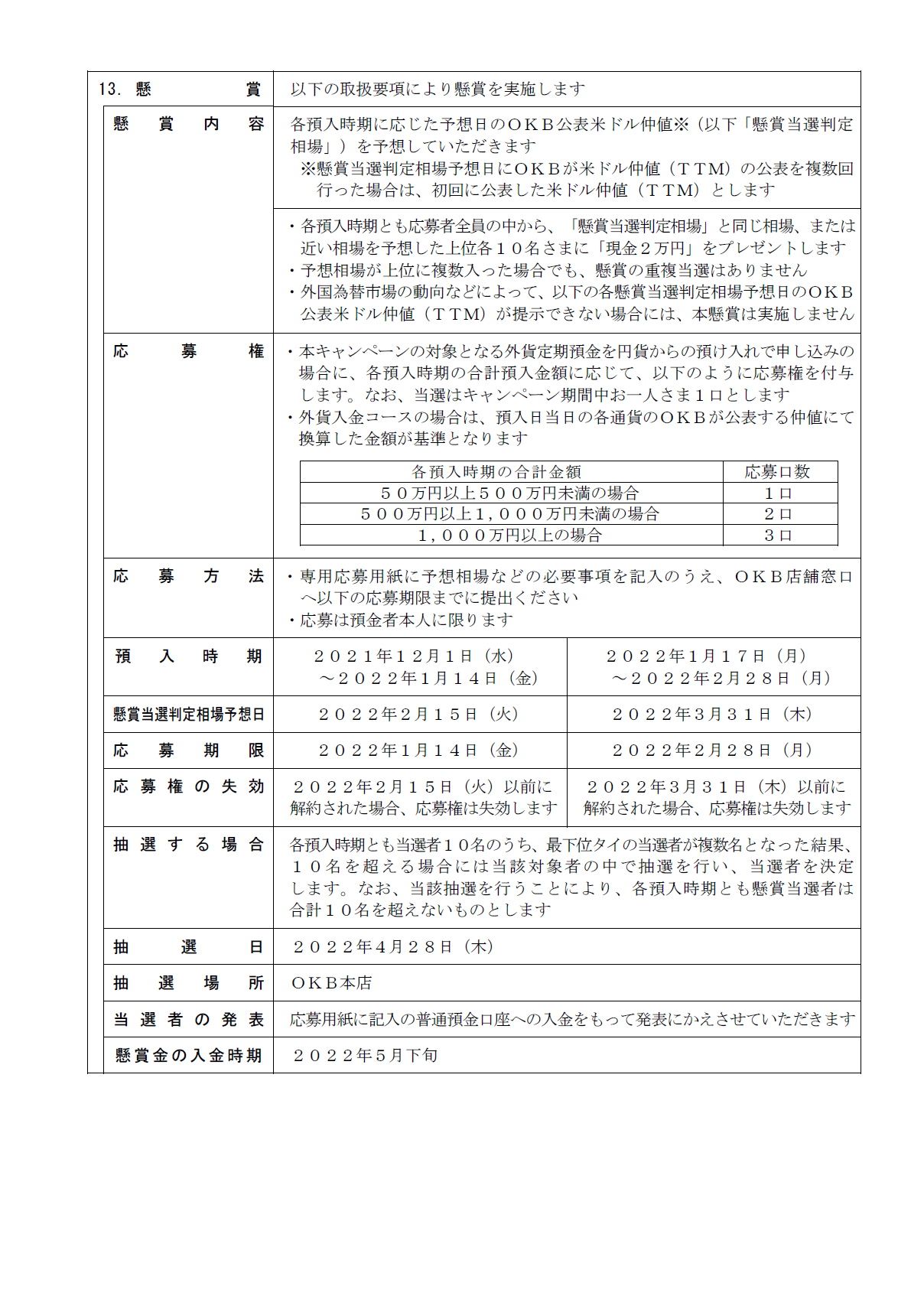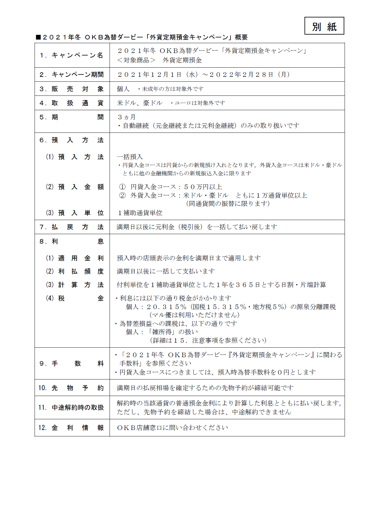 2021年冬 OKB為替ダービー「外貨定期預金キャンペーン」の実施