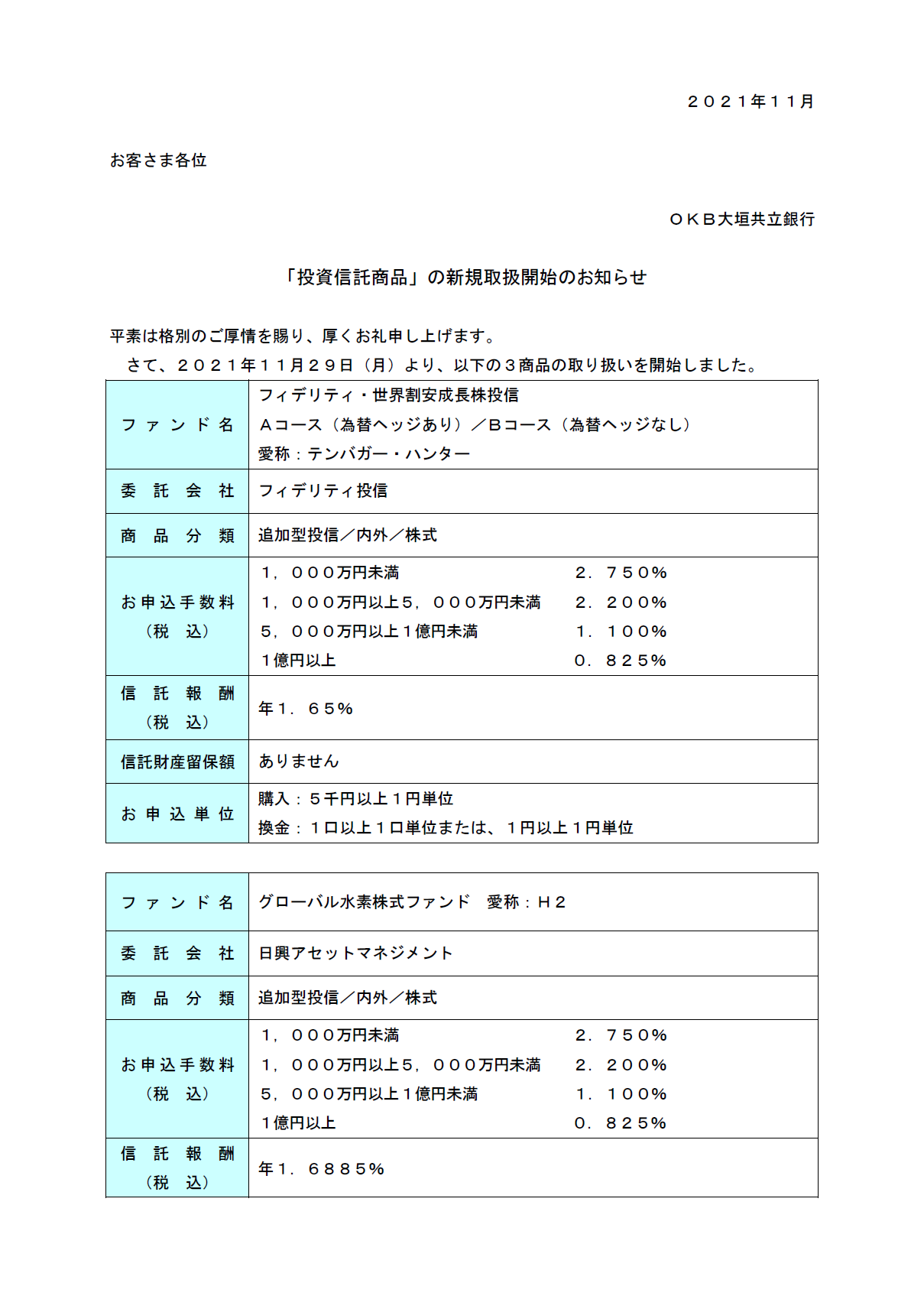 「投資信託商品」の新規取扱開始のお知らせ