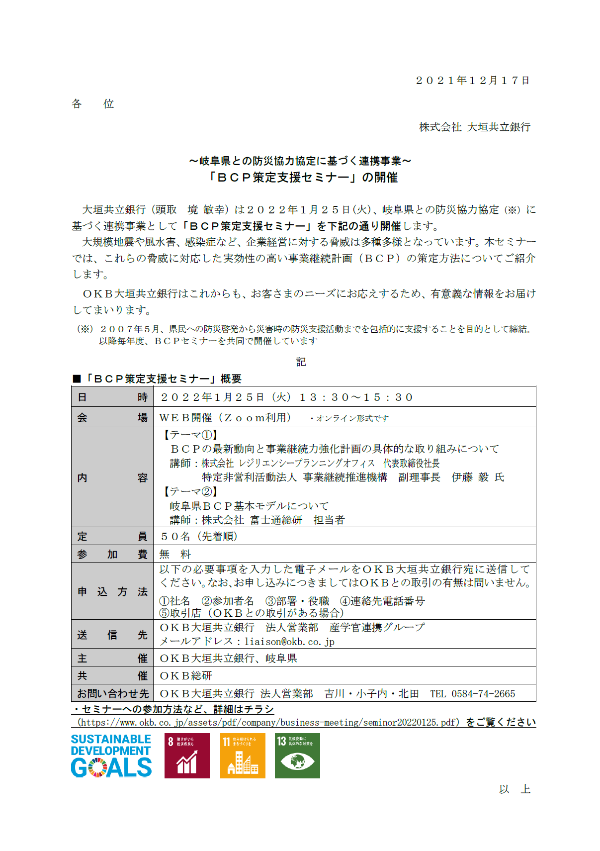 「BCP策定支援セミナー」の開催