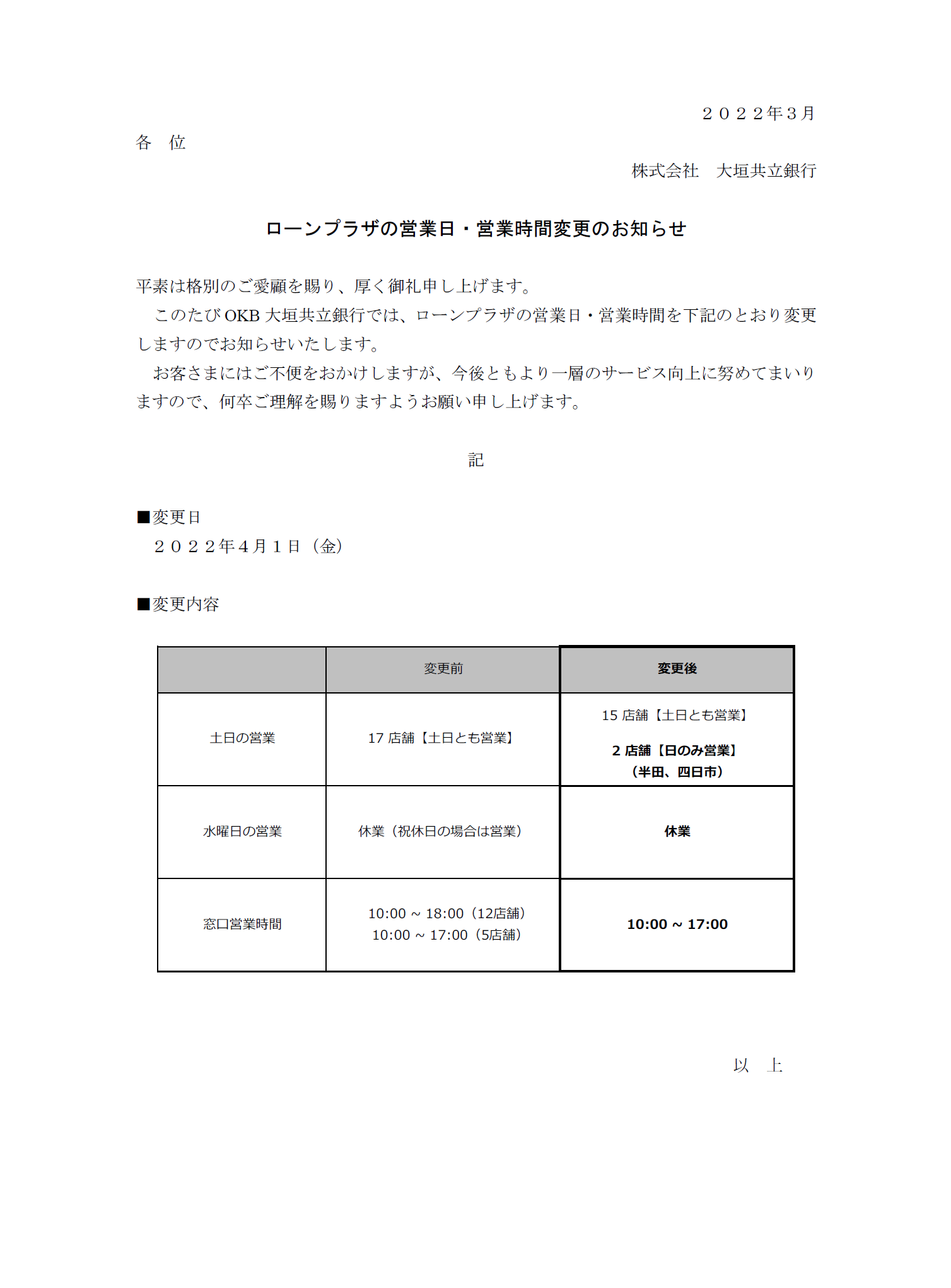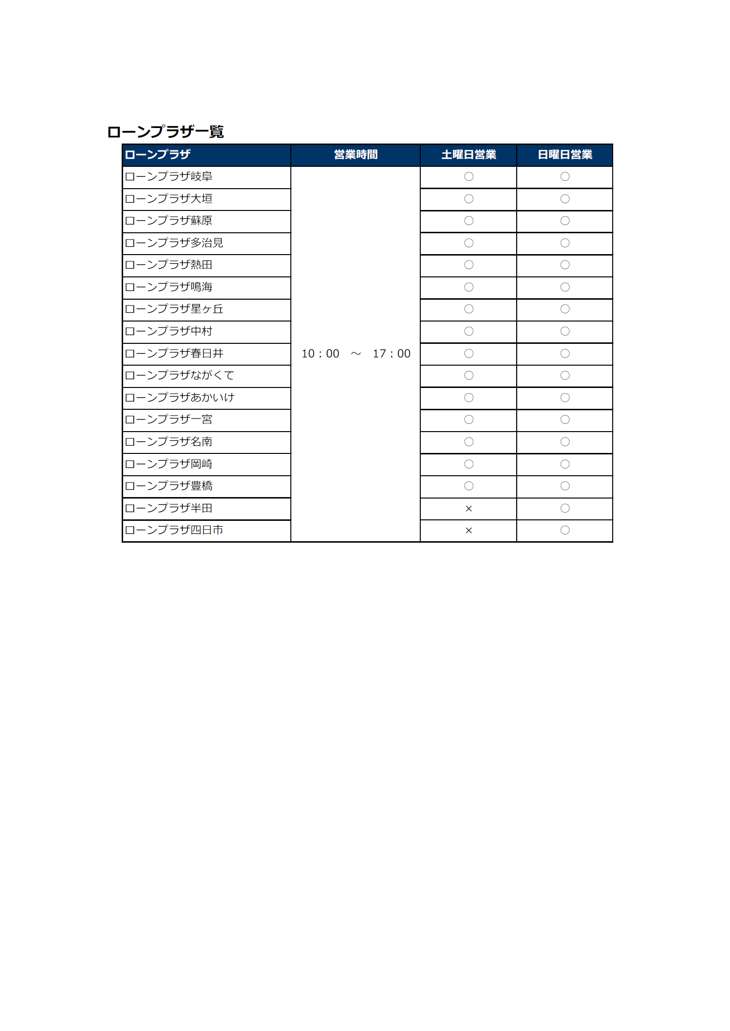 ローンプラザの営業日・営業時間変更のお知らせ
