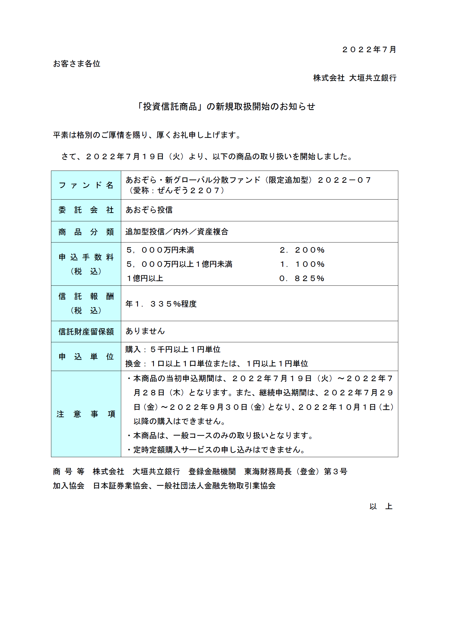 あおぞら・新グローバル分散ファンド(限定追加型)2022-07
