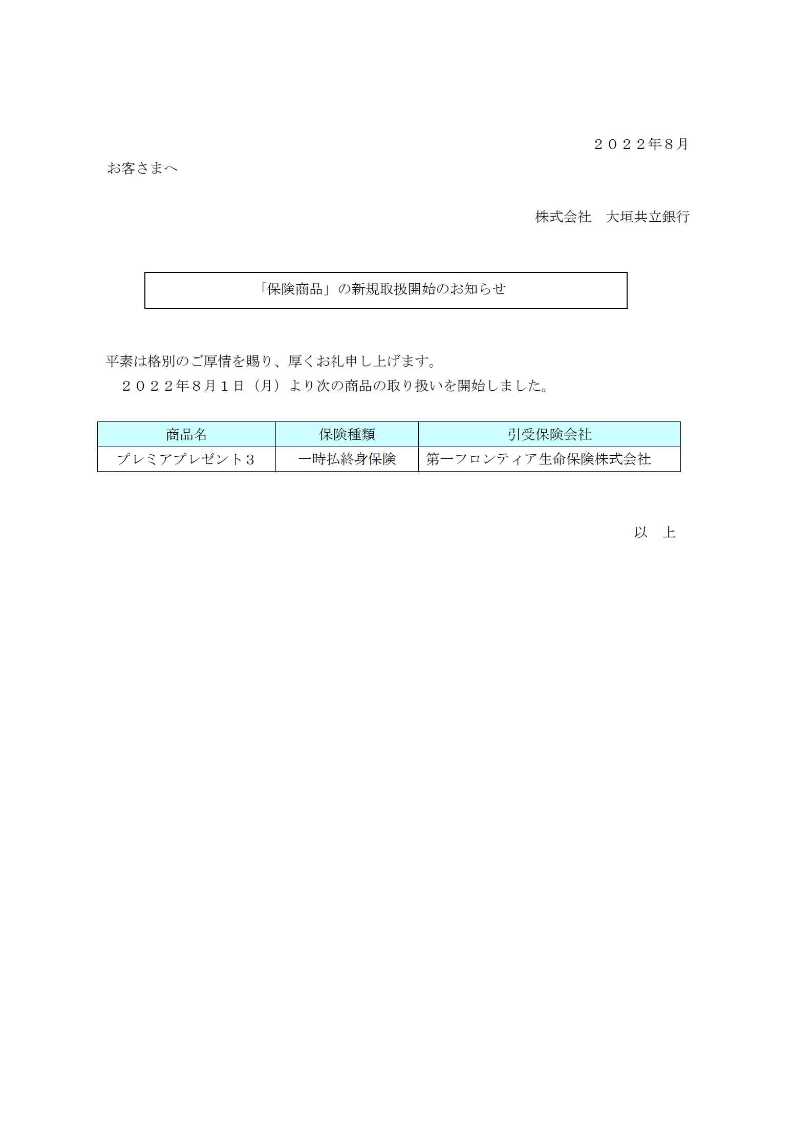 「保険商品」の新規取扱開始のお知らせ