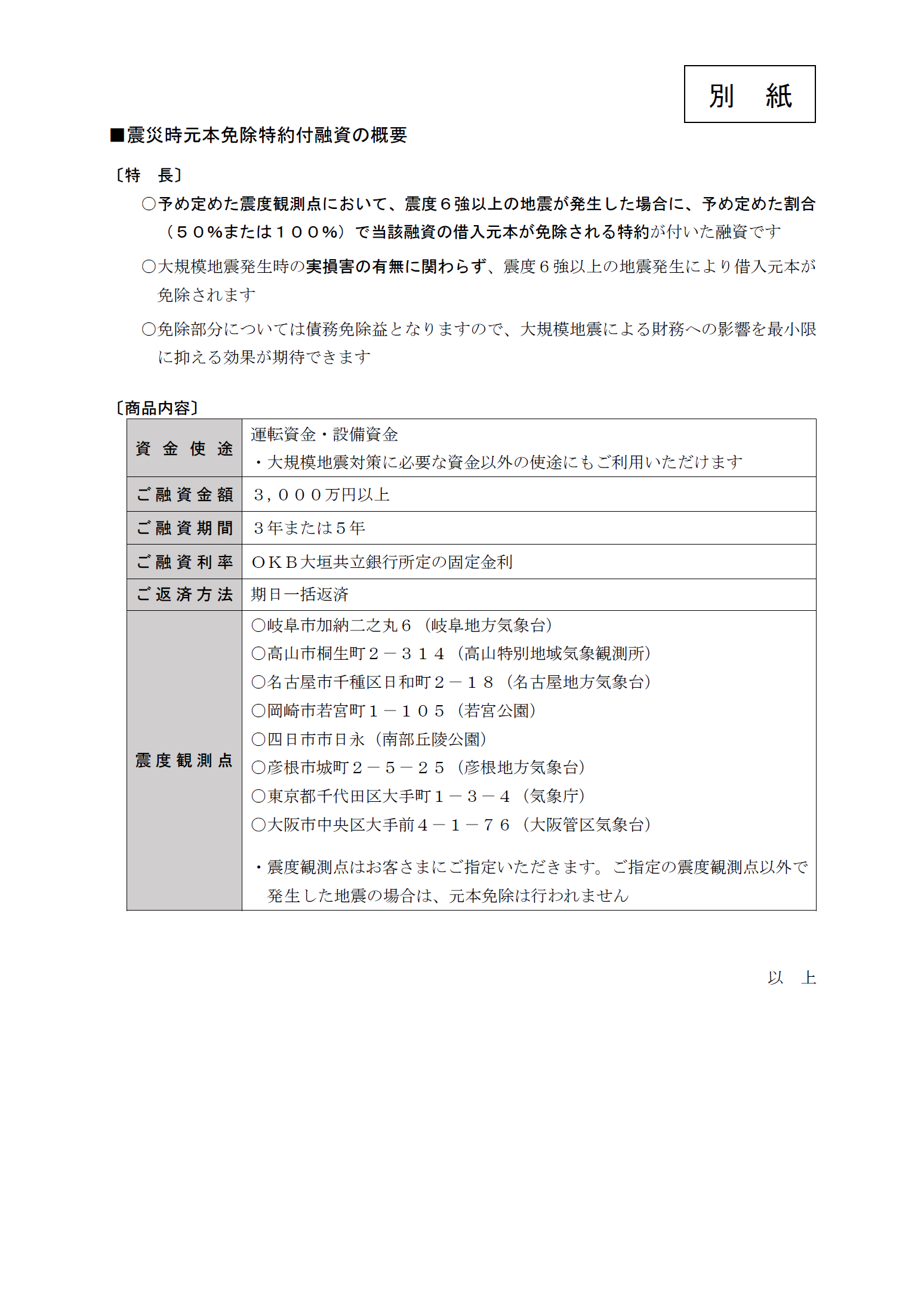 「震災時元本免除特約付融資」のご利用