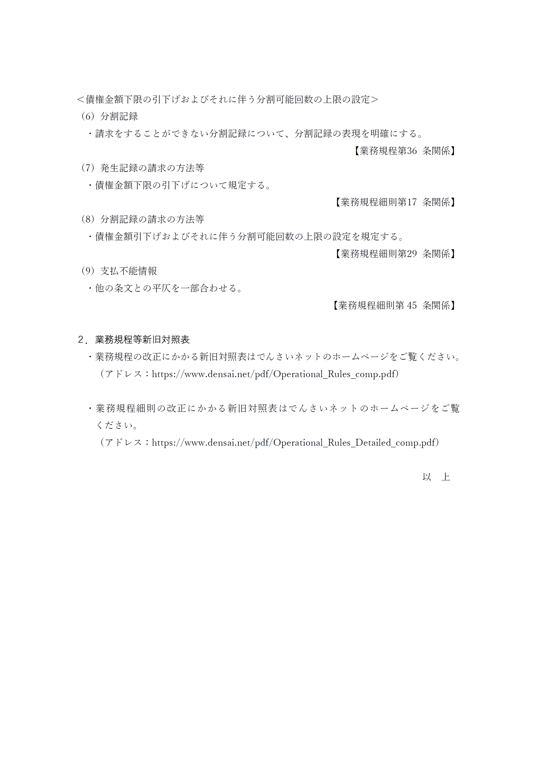業務規程細則の改正にかかる新旧対照表