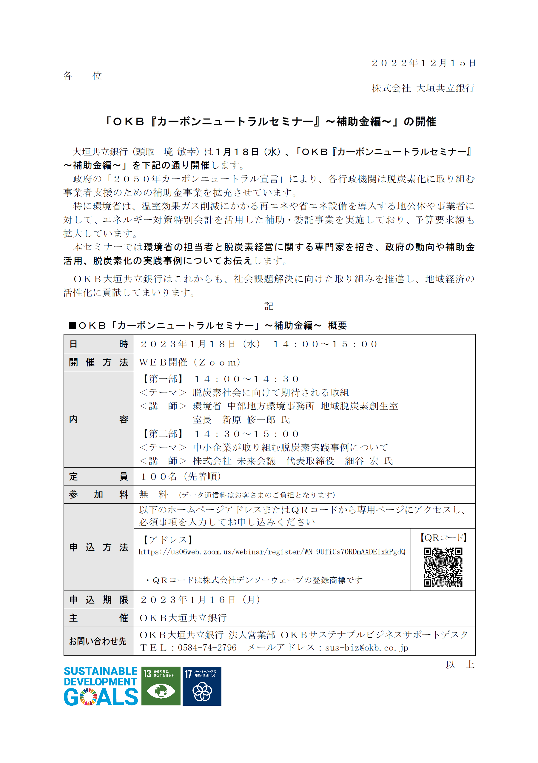 「OKB『 カーボンニュートラルセミナー 』~補助金編~」の開催