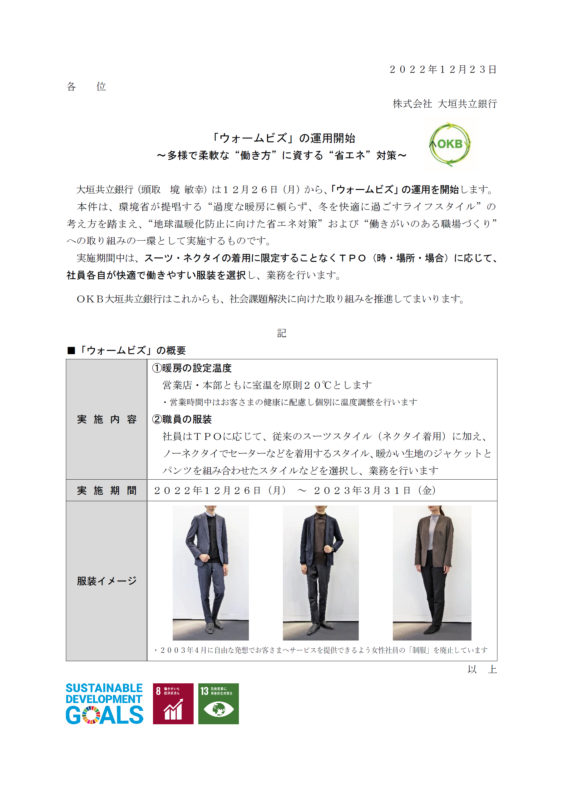 「ウォームビズ」の運用開始